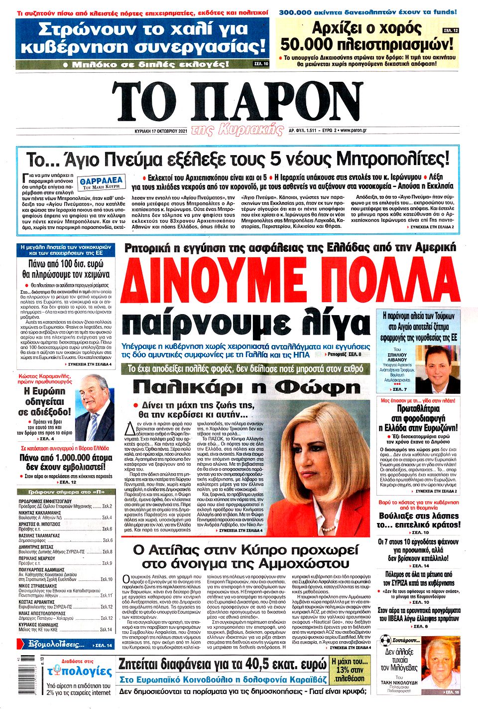 Διαβάστε στο zougla.gr τα πρωτοσέλιδα και τα οπισθόφυλλα των εφημερίδων της Κυριακής.