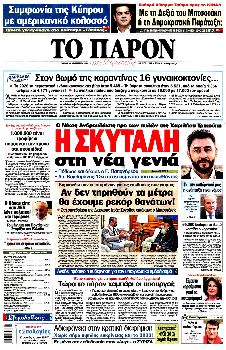 Διαβάστε στο zougla.gr τα πρωτοσέλιδα και τα οπισθόφυλλα των εφημερίδων της Κυριακής.
