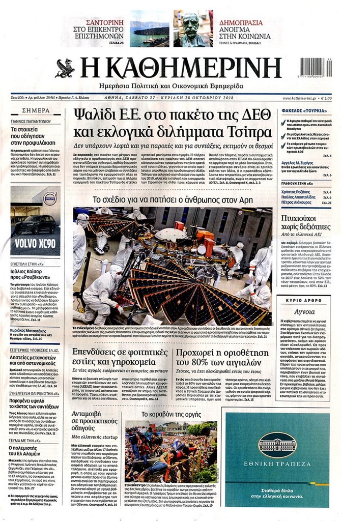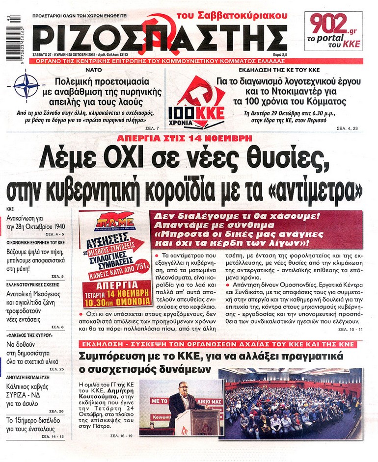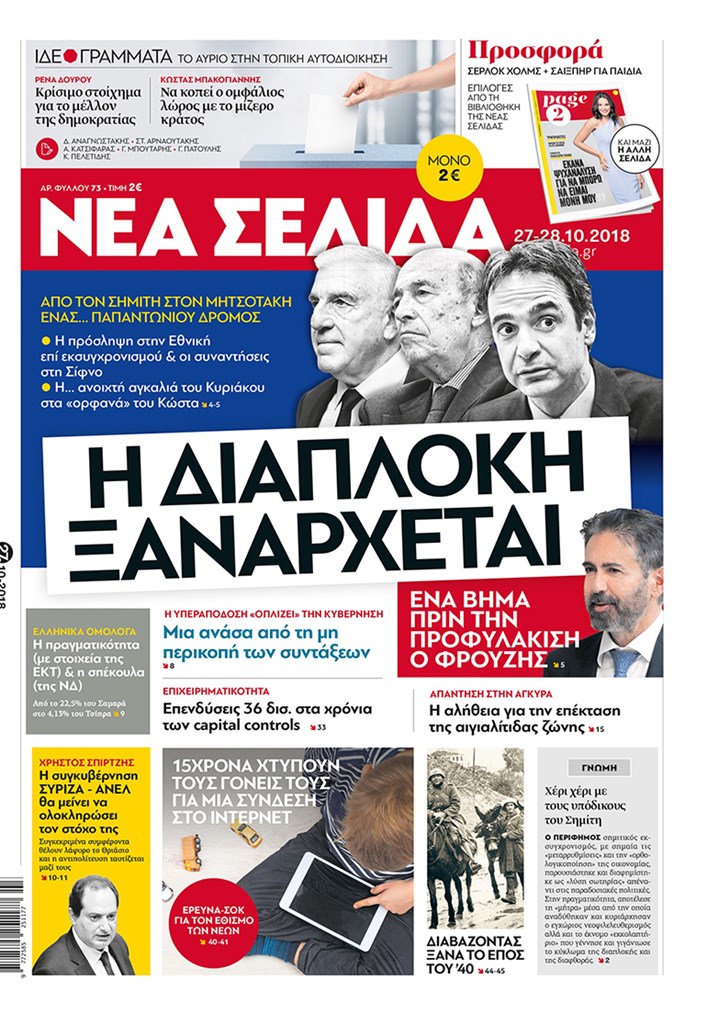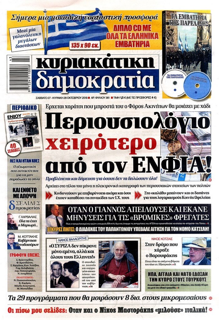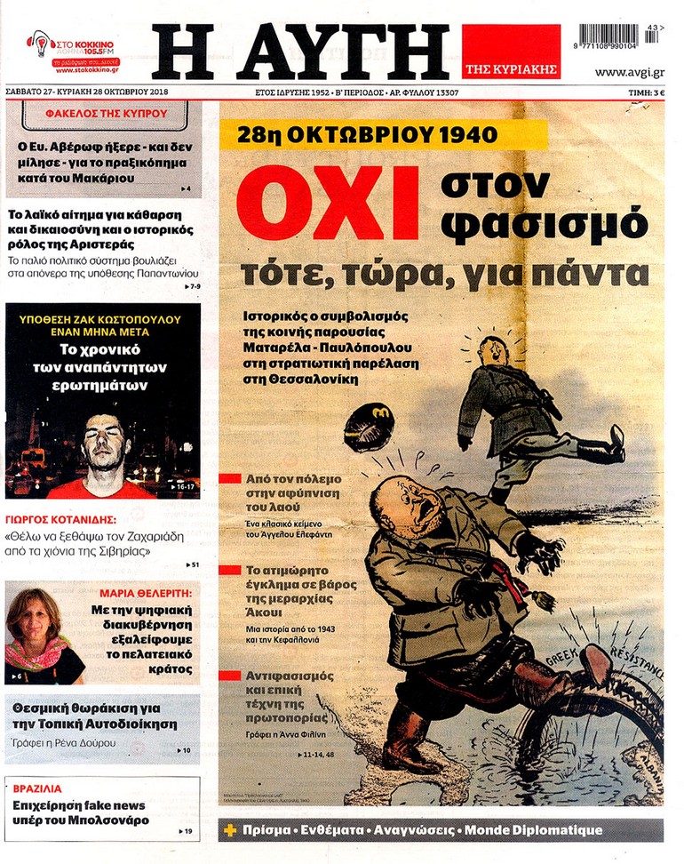 Διαβάστε στο zougla.gr τα πρωτοσέλιδα και τα οπισθόφυλλα των εφημερίδων της Κυριακής που κυκλοφορούν εκτάκτως το Σάββατο λόγω του εορτασμού της 28ης Οκτωβρίου.