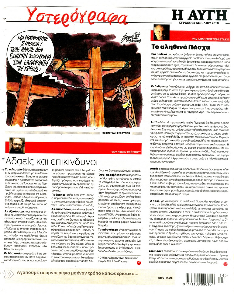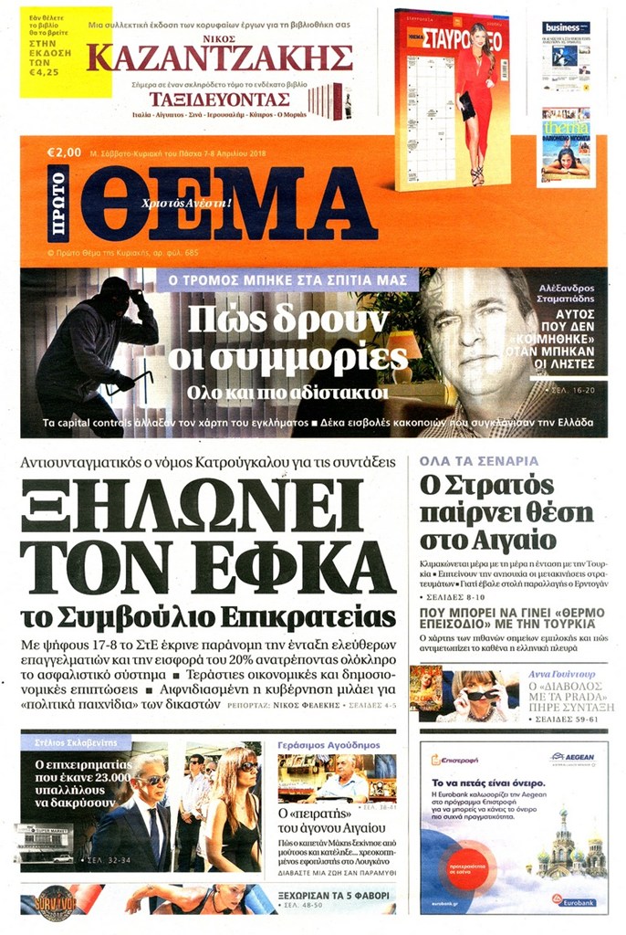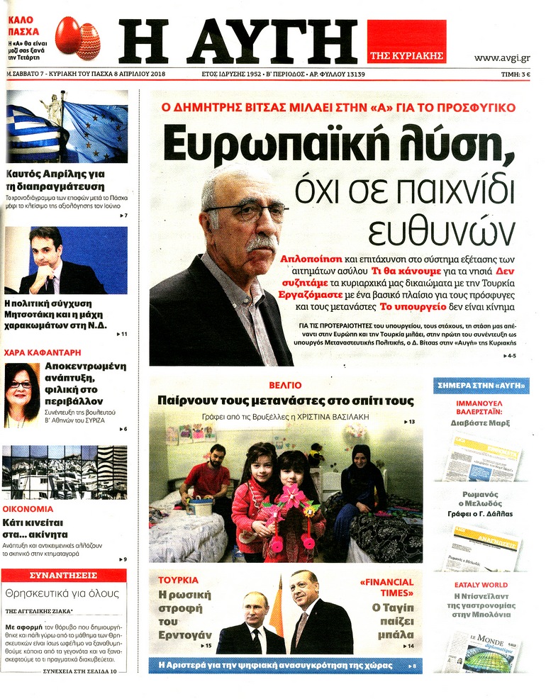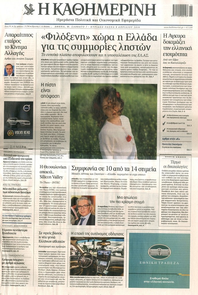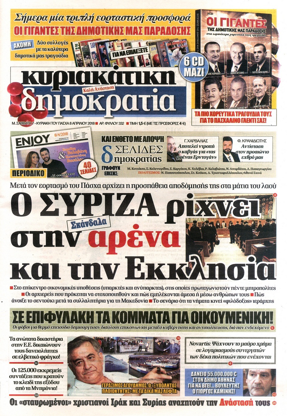 Διαβάστε τα πρωτοσέλιδα των εφημερίδων της Κυριακής του Πάσχα: