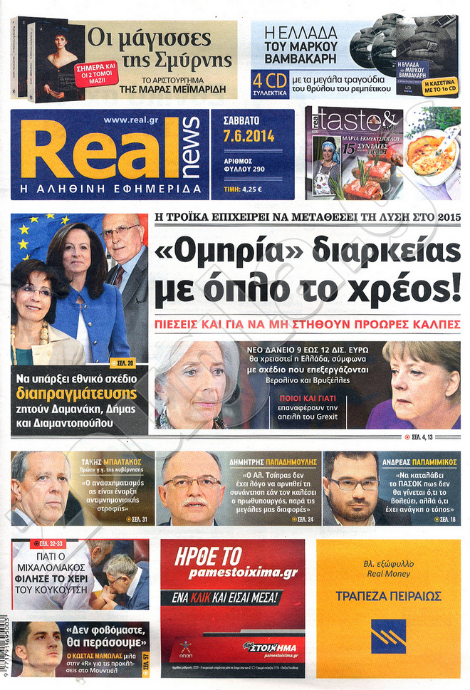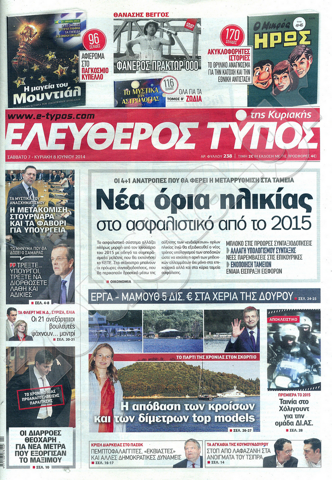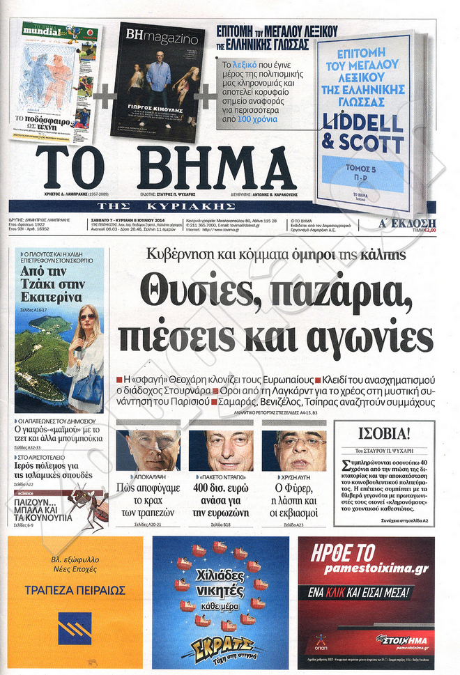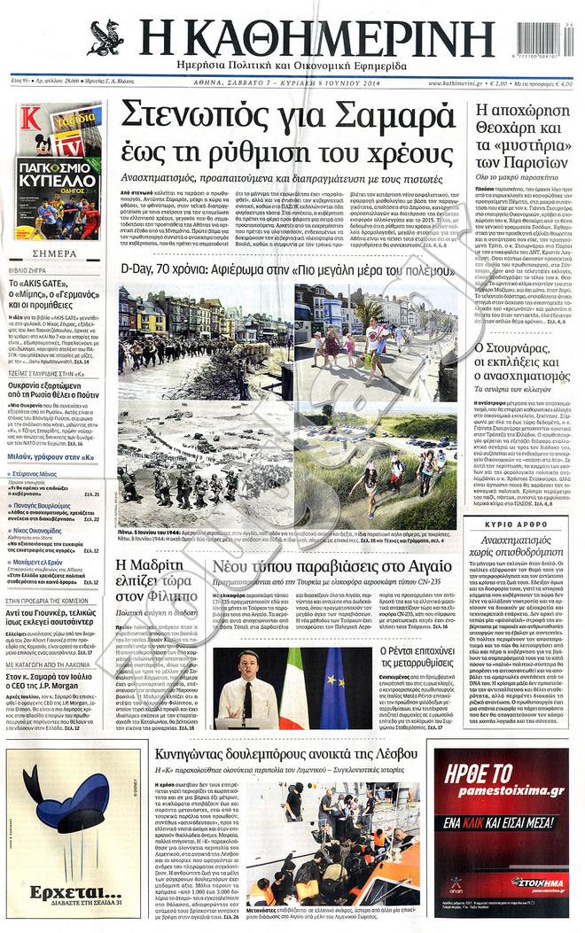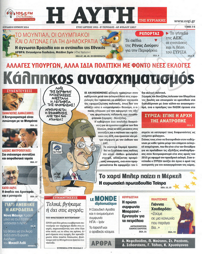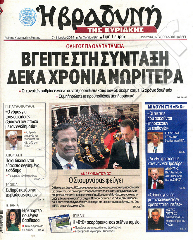 Διαβάστε στο zougla.gr τα πρωτοσέλιδα των εφημερίδων της Κυριακής, που κυκλοφόρησαν εκτάκτως σήμερα λόγω της αργίας του Αγίου Πνεύματος.