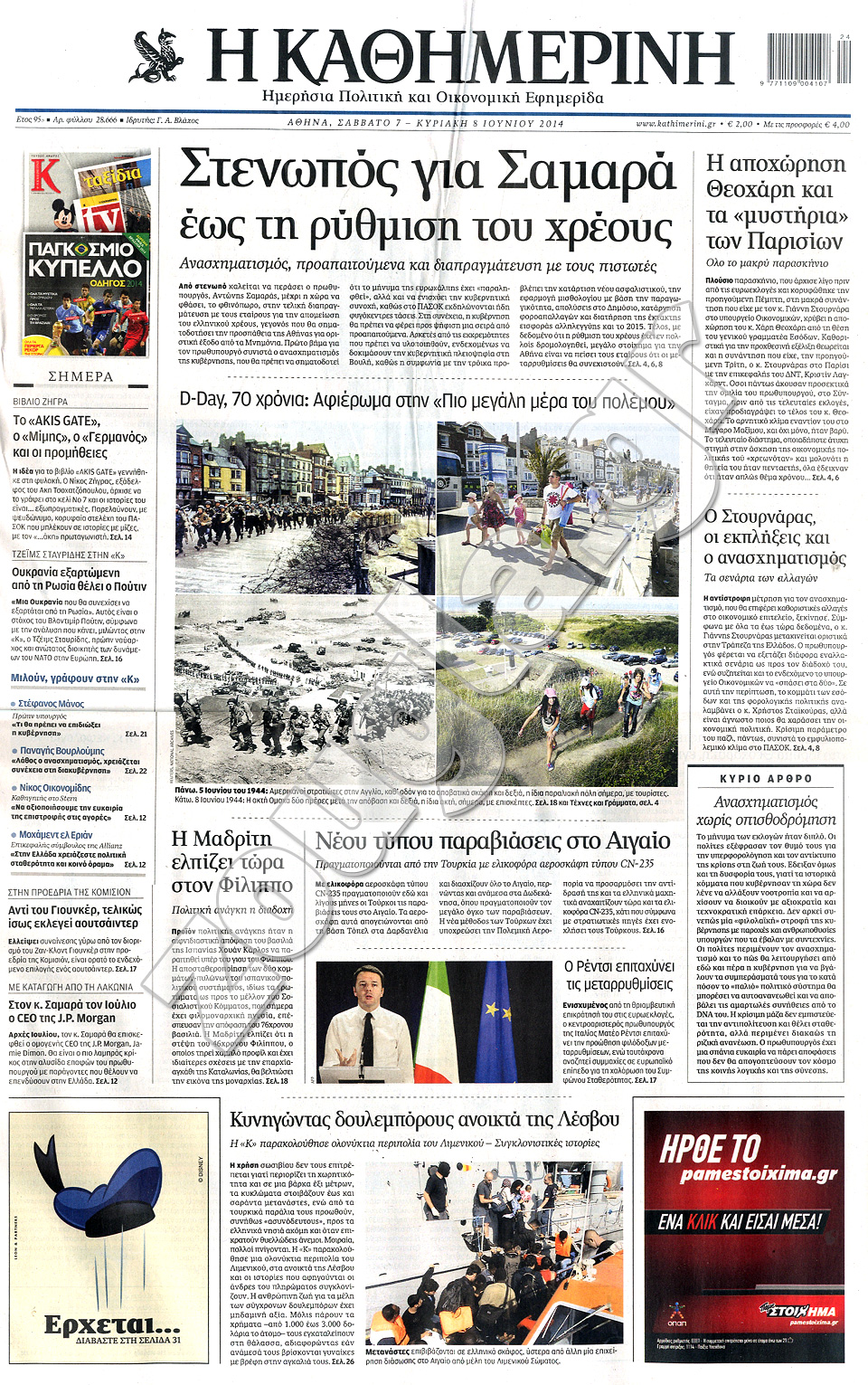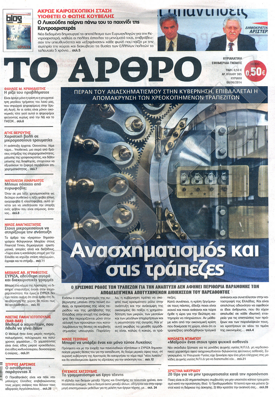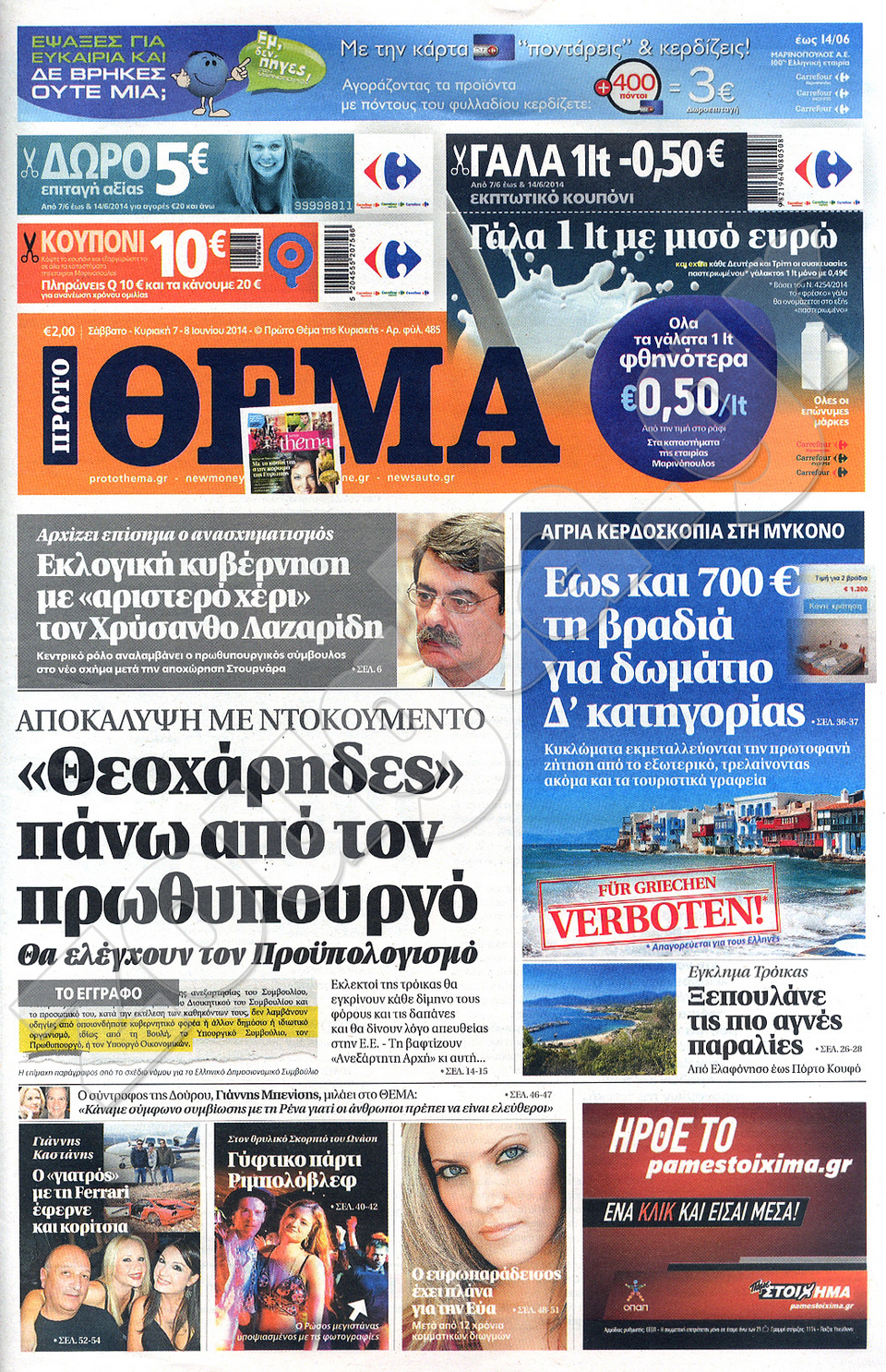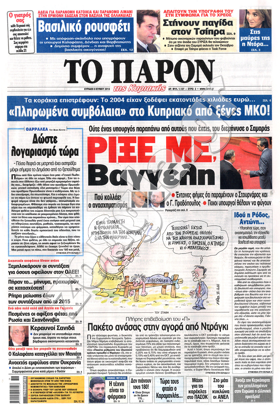 Διαβάστε στο zougla.gr τα πρωτοσέλιδα των εφημερίδων της Κυριακής, που κυκλοφόρησαν εκτάκτως σήμερα λόγω της αργίας του Αγίου Πνεύματος.