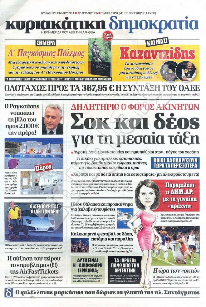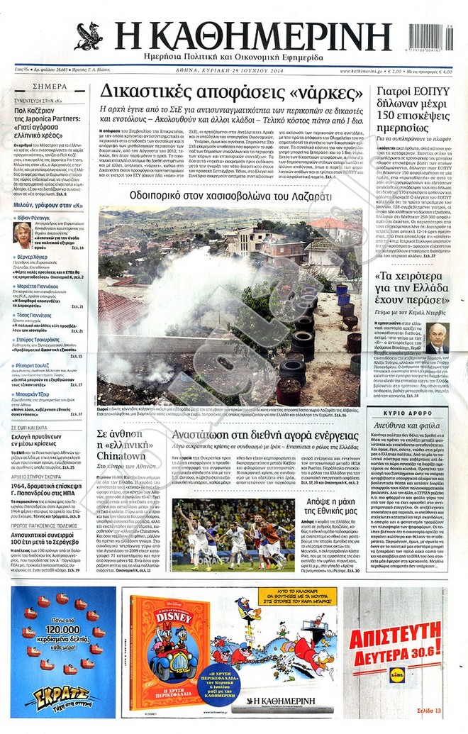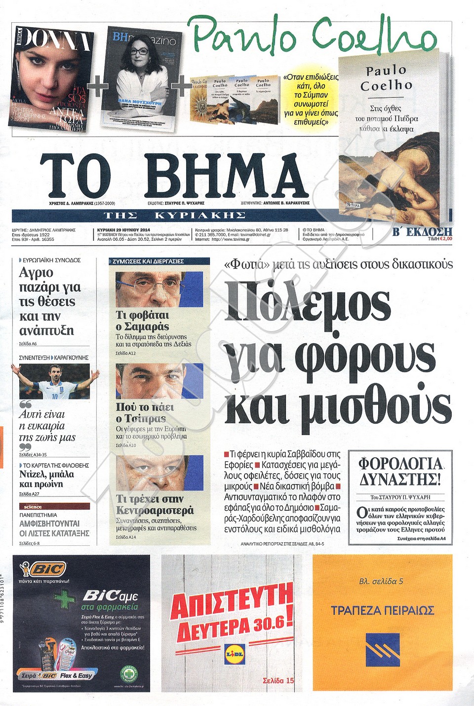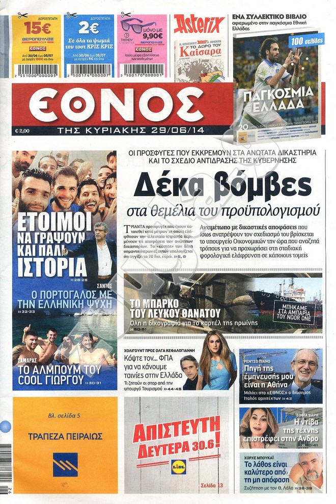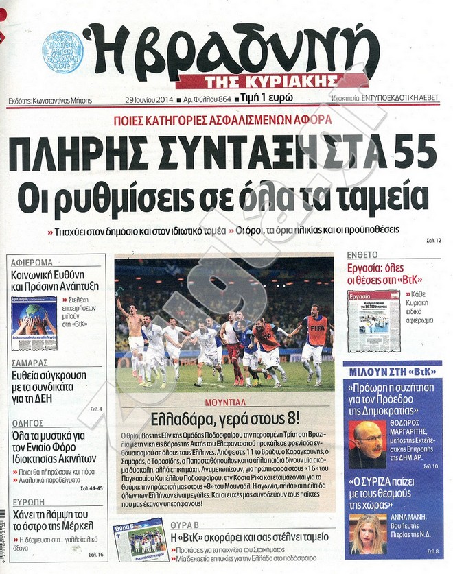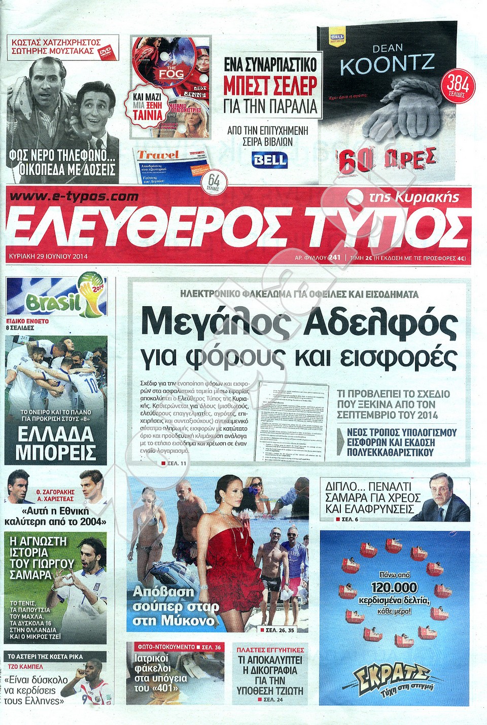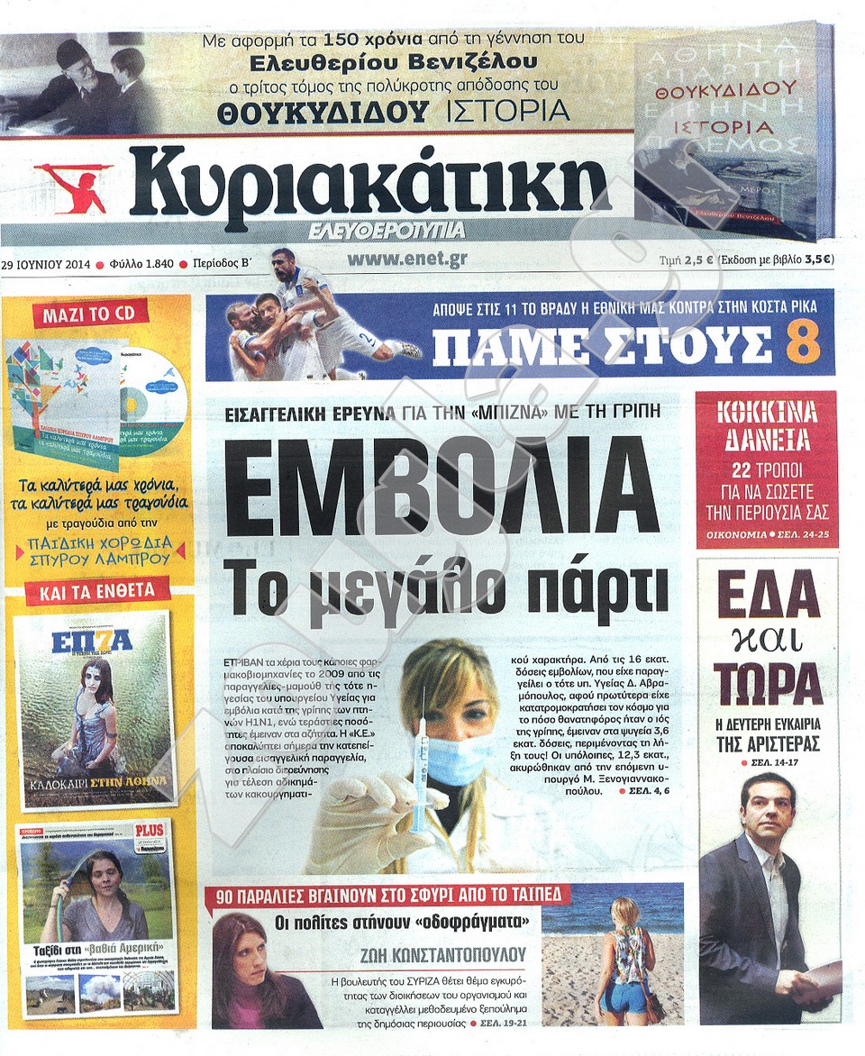 Tα πρωτοσέλιδα των κυριακάτικων εφημερίδων