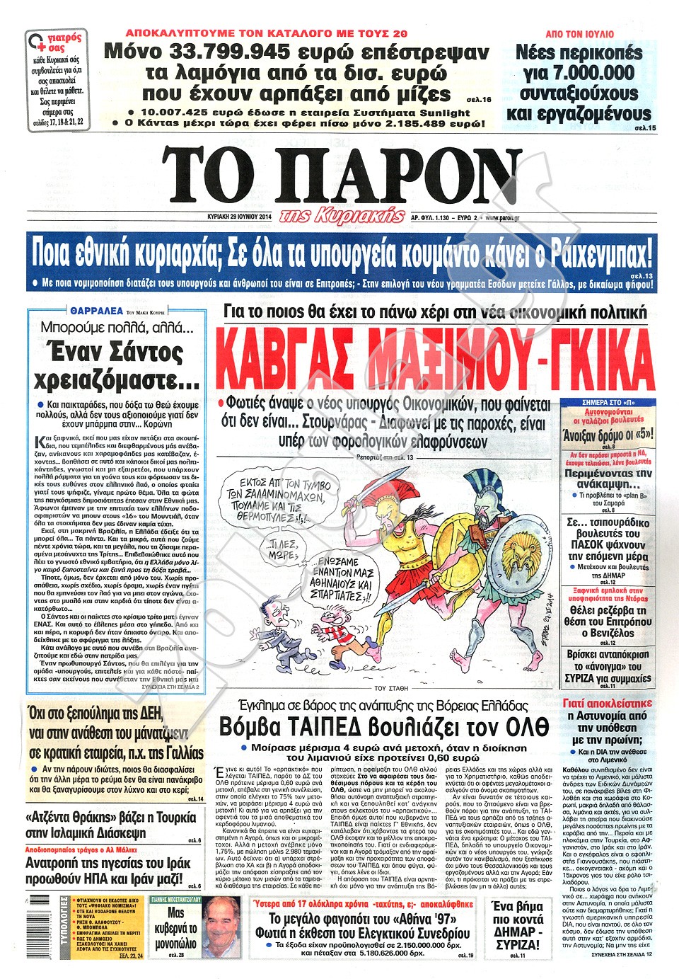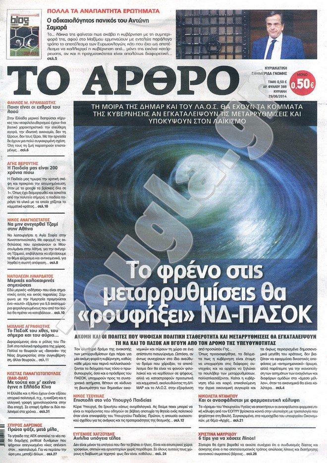 Διαβάστε στο zougla.gr τα πρωτοσέλιδα των κυριακάτικων εφημερίδων...