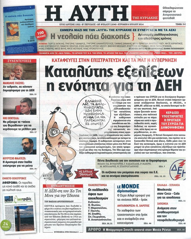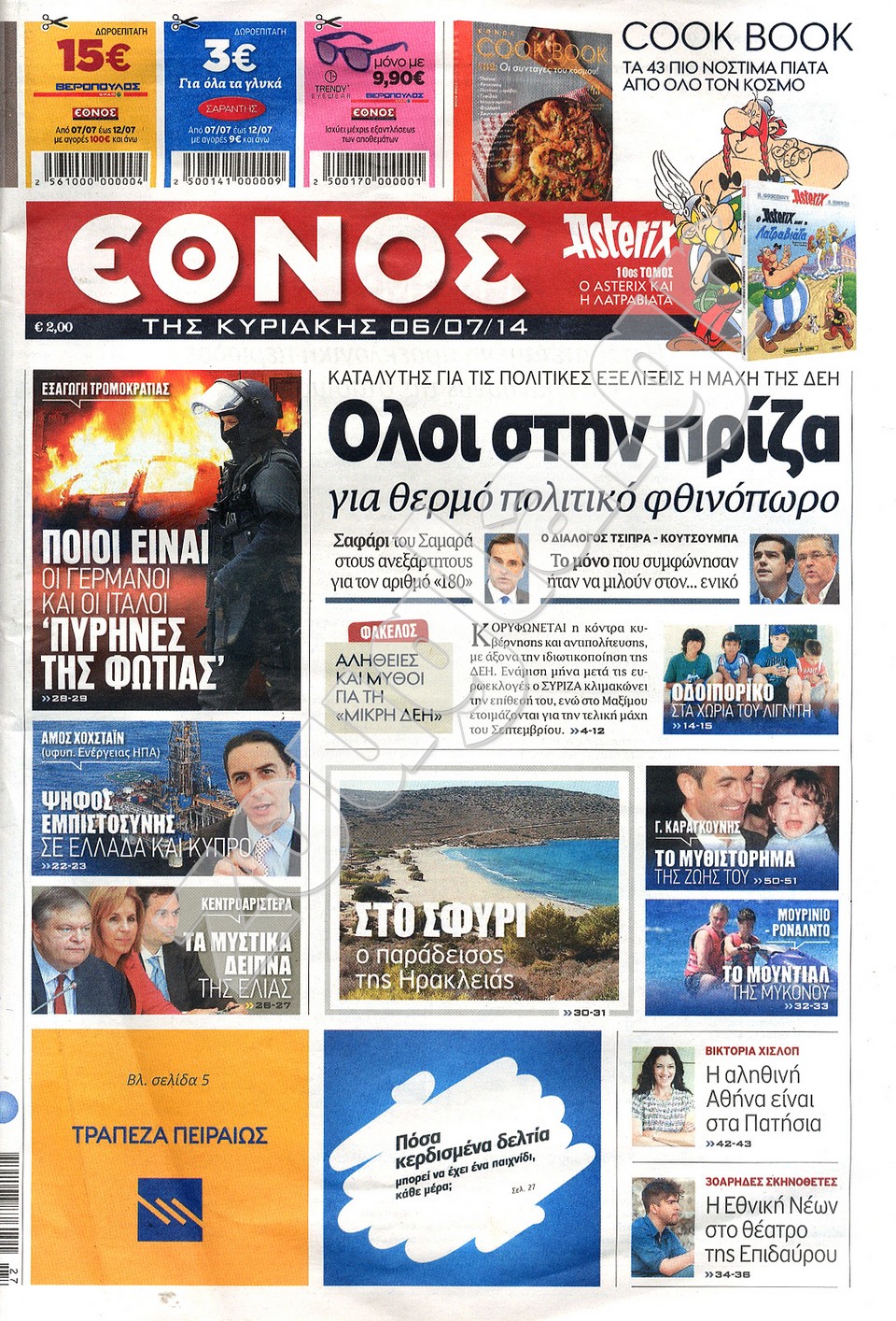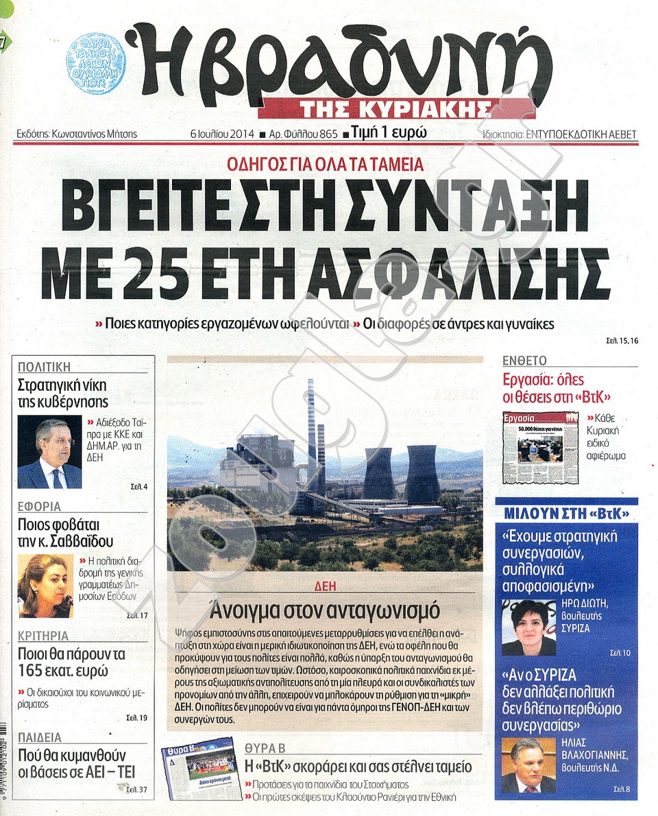 Tα πρωτοσέλιδα των κυριακάτικων εφημερίδων