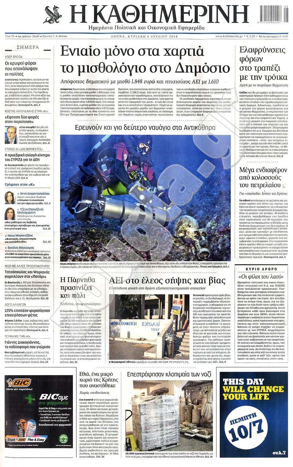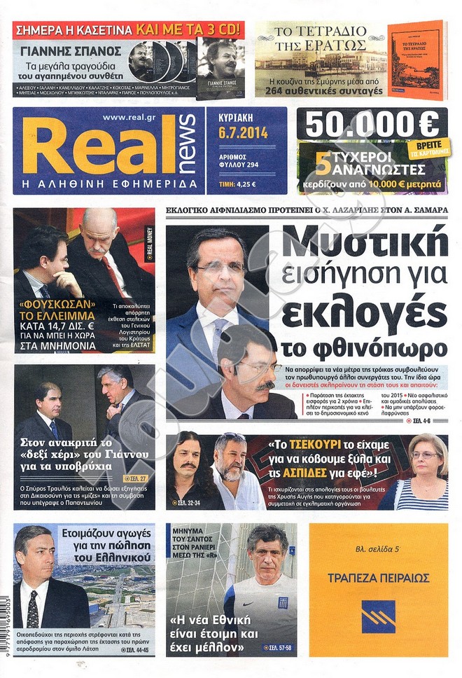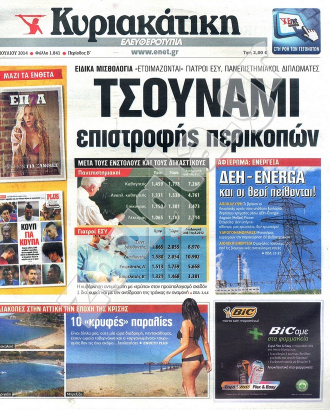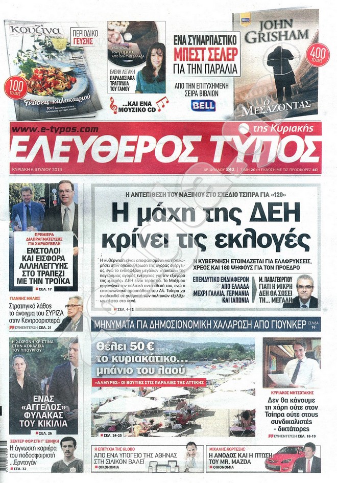 Διαβάστε στο zougla.gr τα πρωτοσέλιδα των κυριακάτικων εφημερίδων...