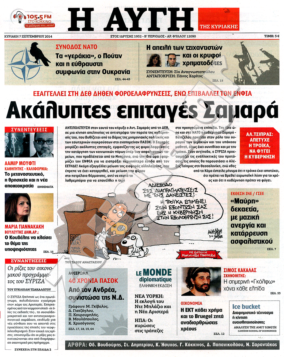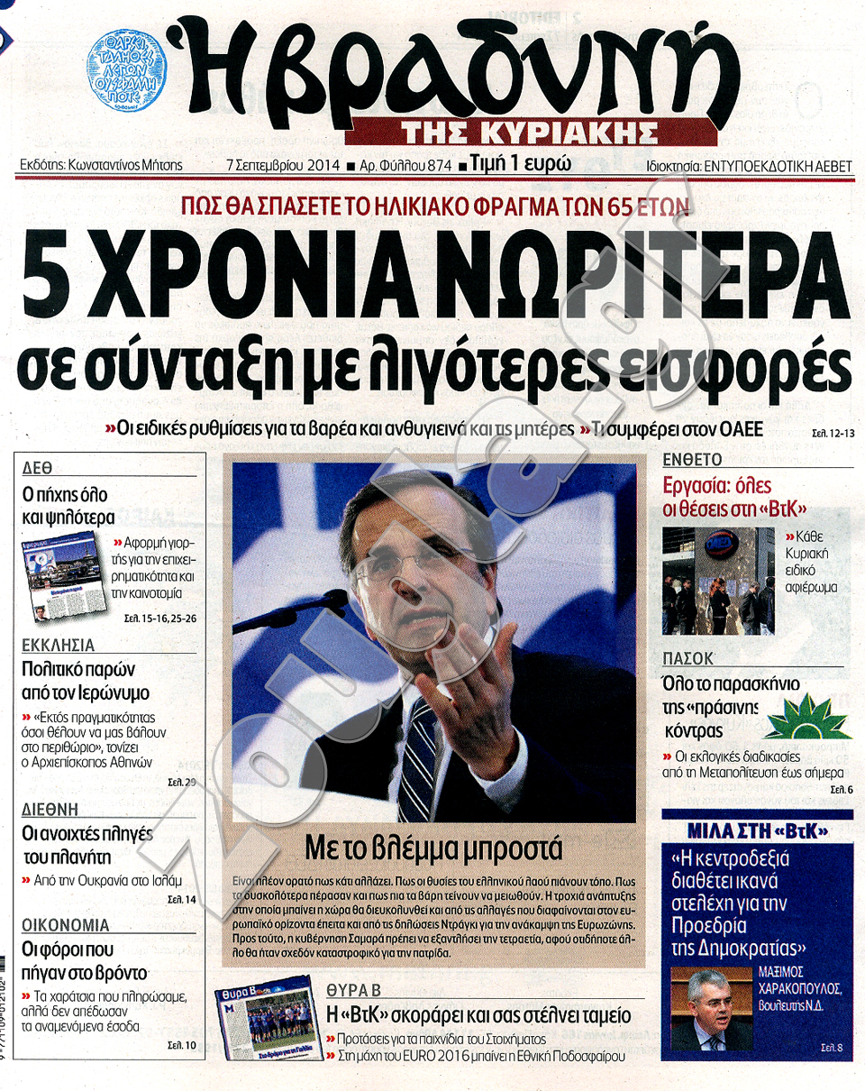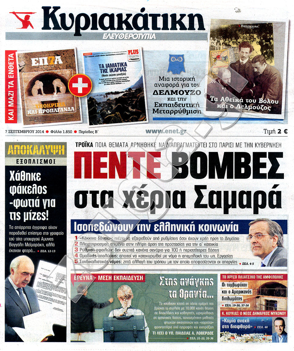 Τα πρωτοσέλιδα των κυριακάτικων εφημερίδων