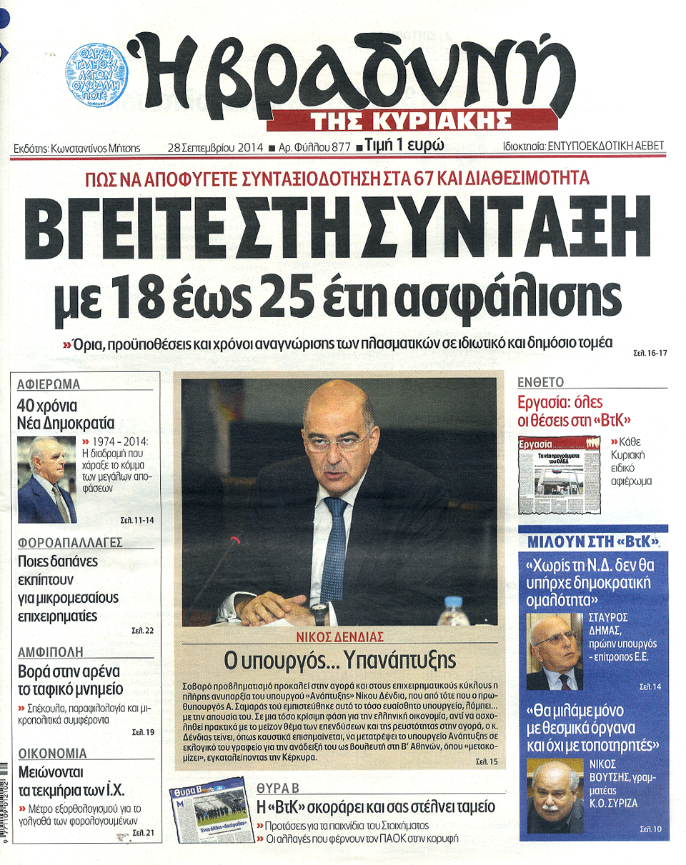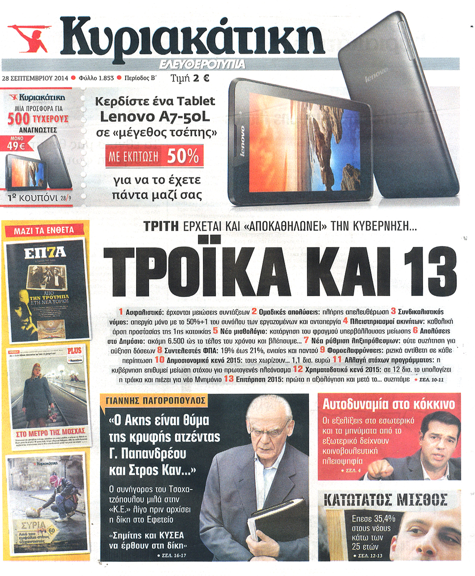 Διαβάστε τα πρωτοσέλιδα των κυριακάτικων εφημερίδων στο zougla.gr: