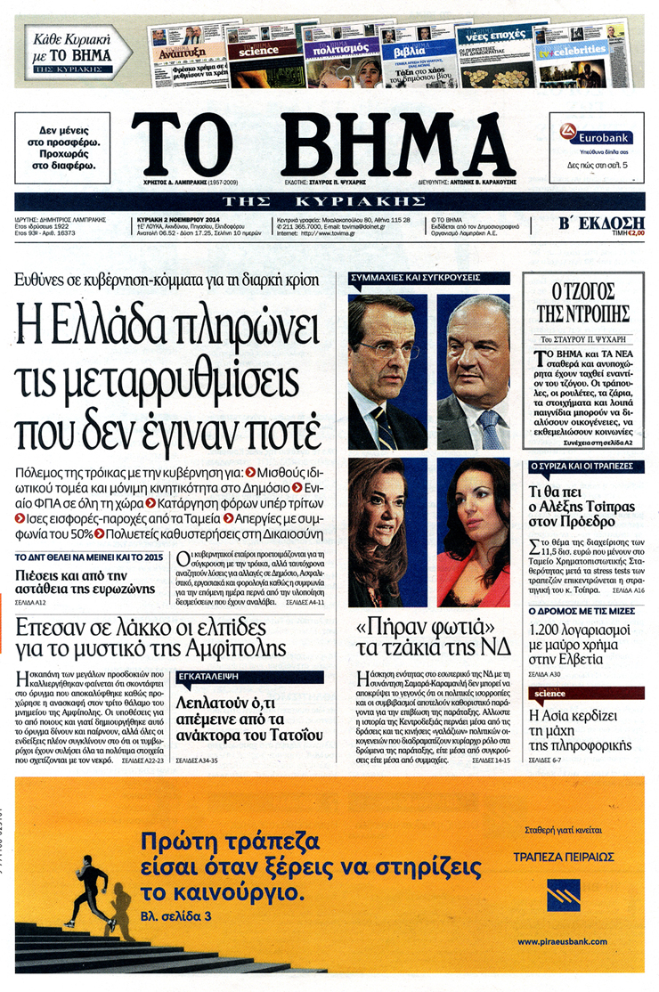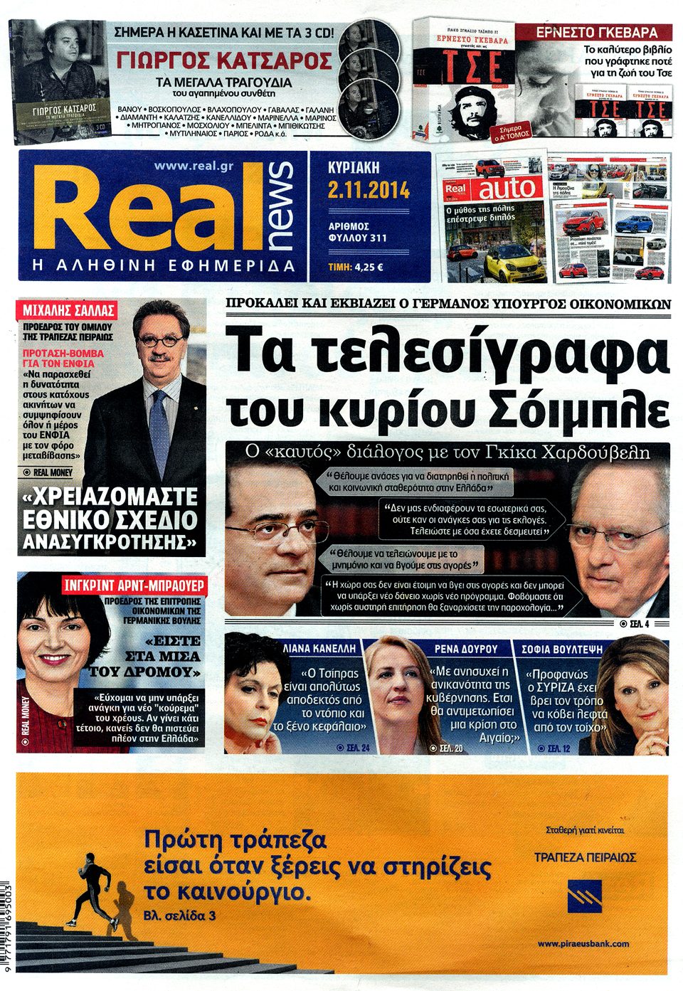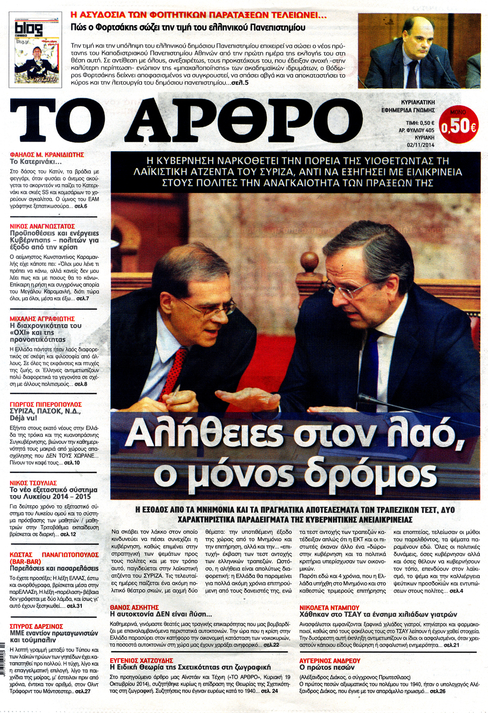 Διαβάστε στο zougla.gr τα πρωτοσέλιδα των κυριακάτικων εφημερίδων...