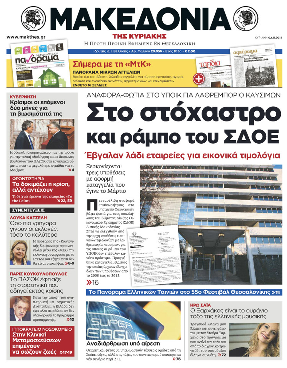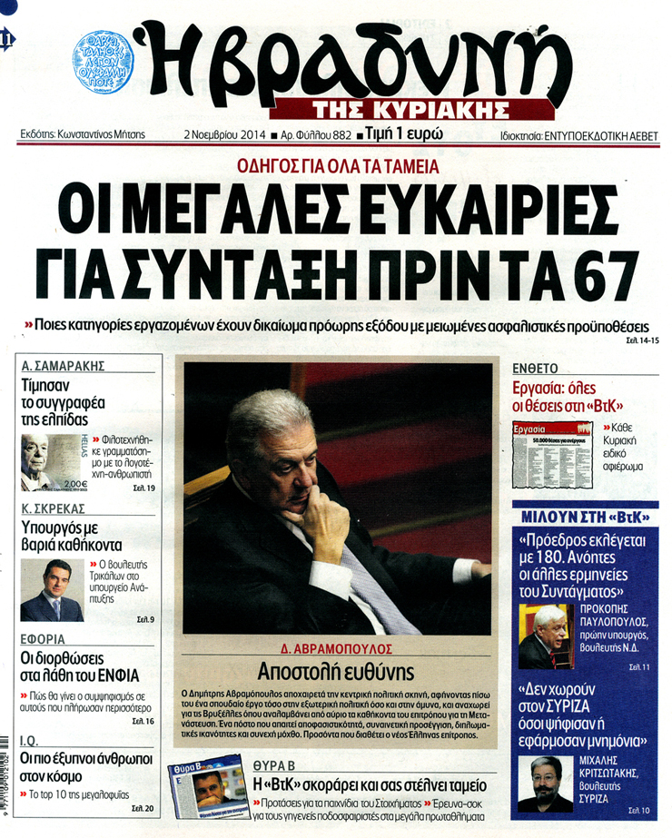 Τα πρωτοσέλιδα των κυριακάτικων εφημερίδων…