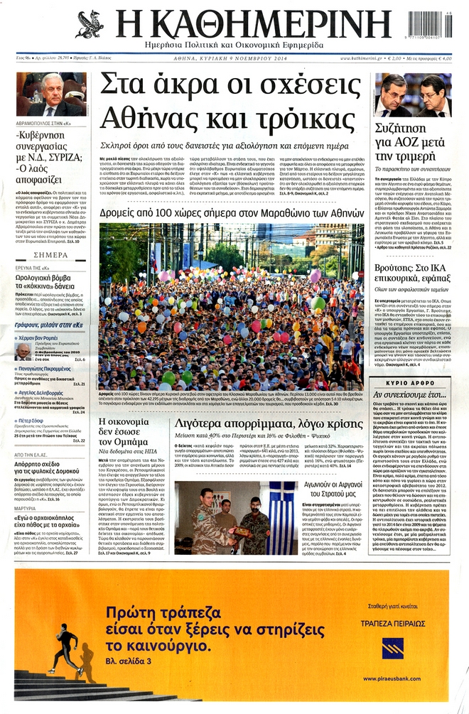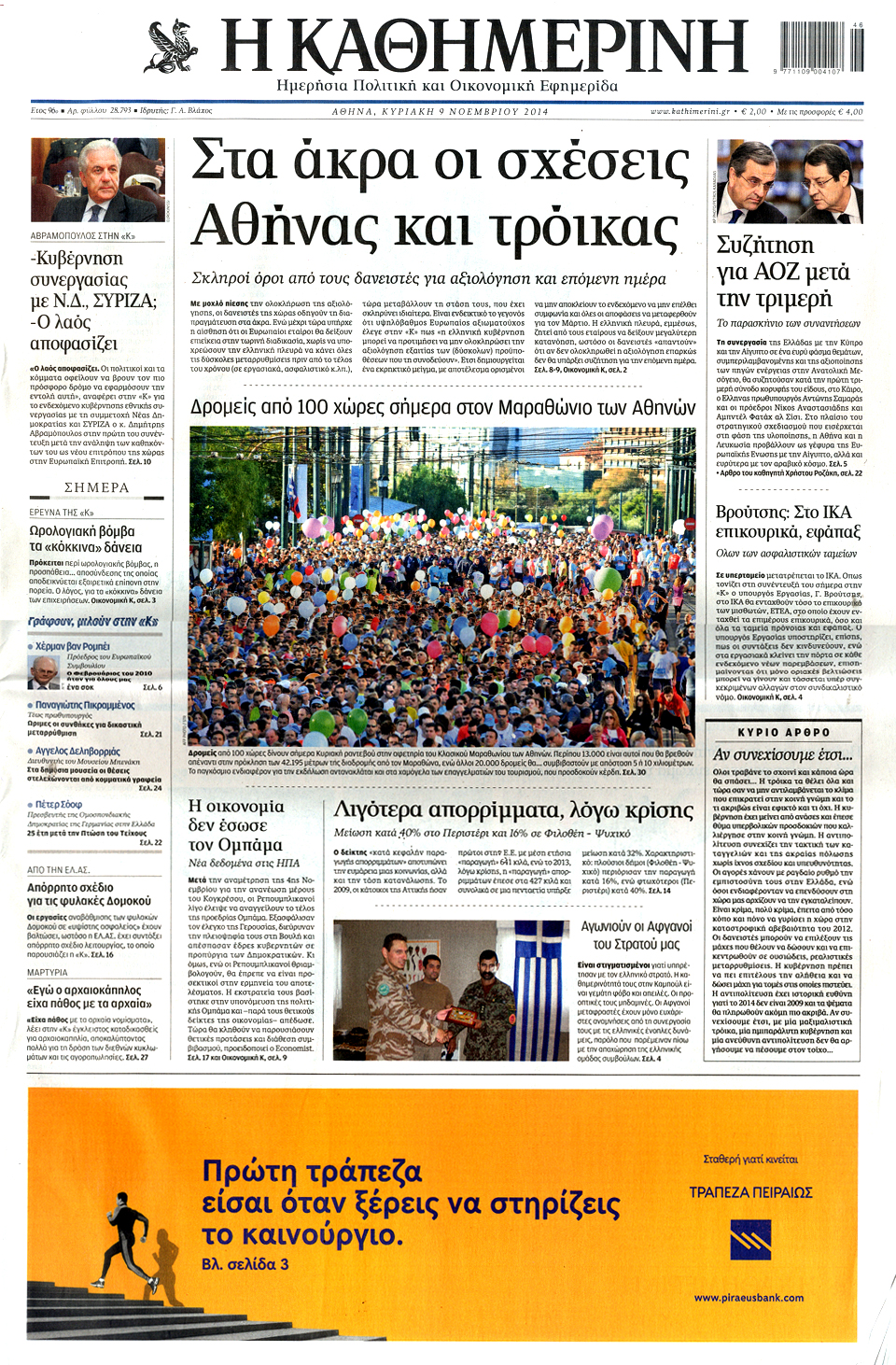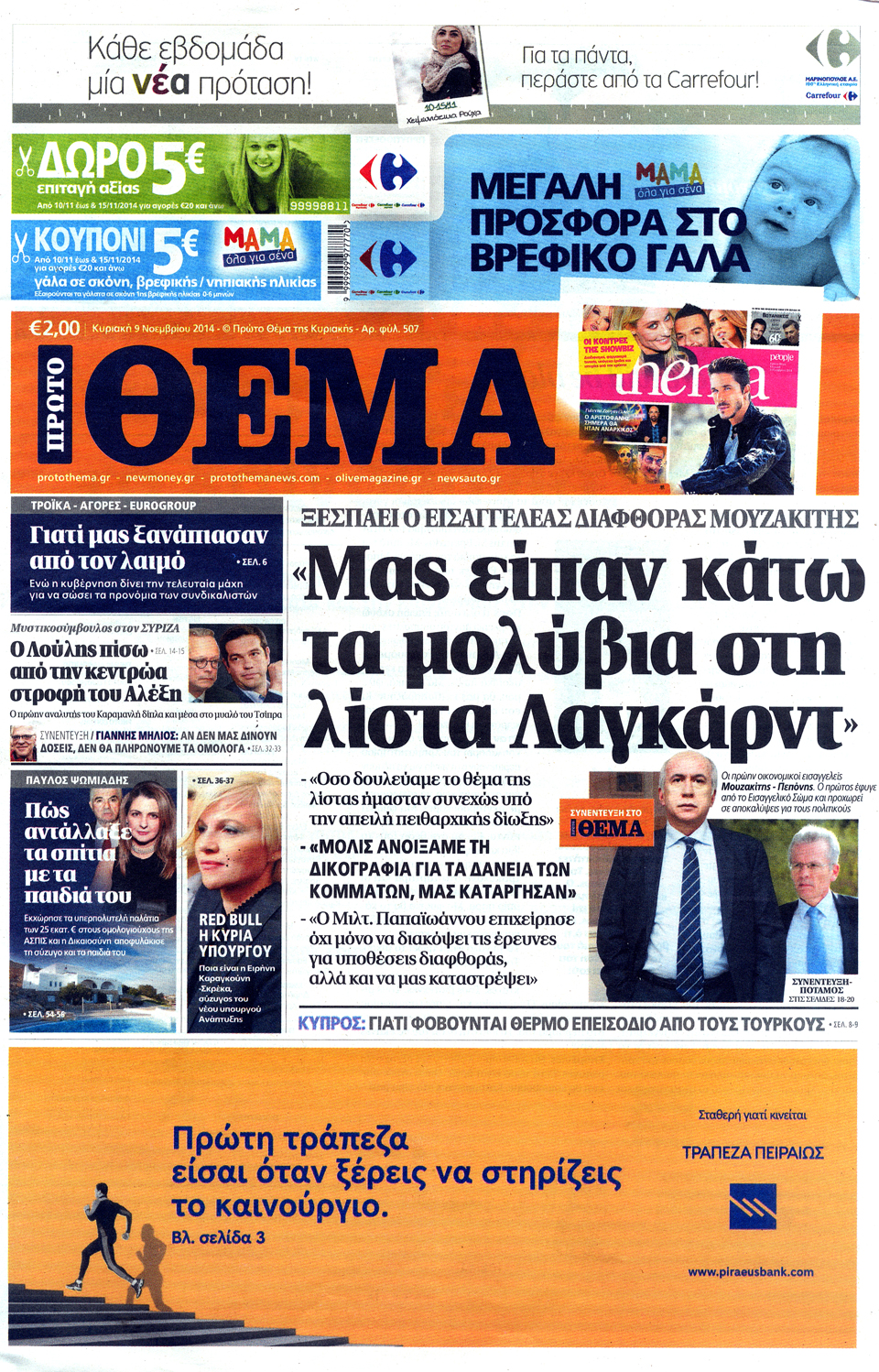 Διαβάστε στο zougla.gr τα πρωτοσέλιδα των κυριακάτικων εφημερίδων.