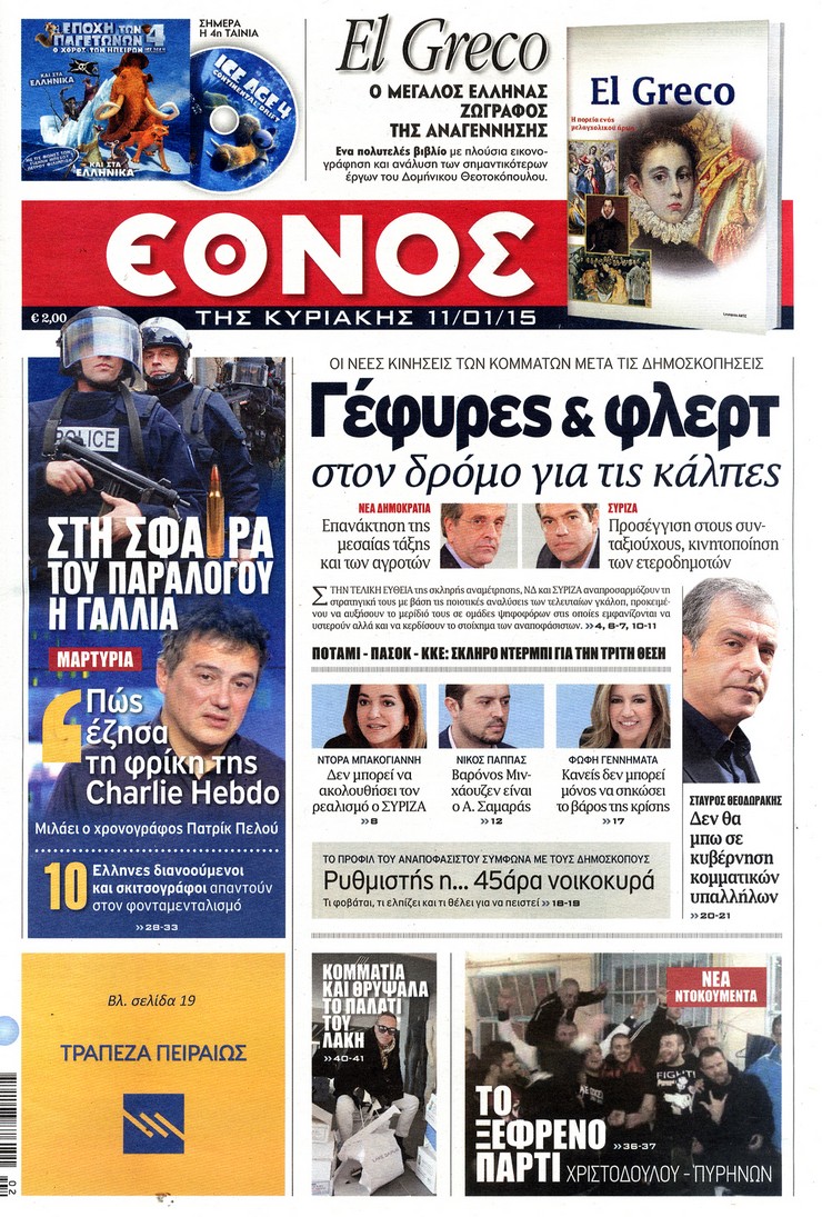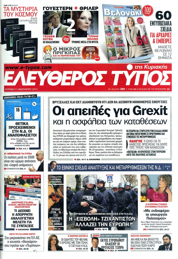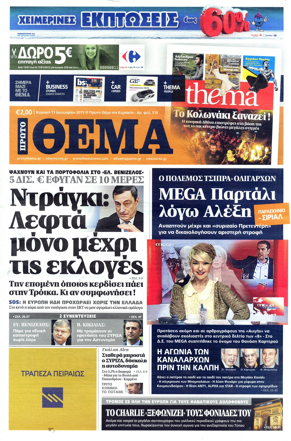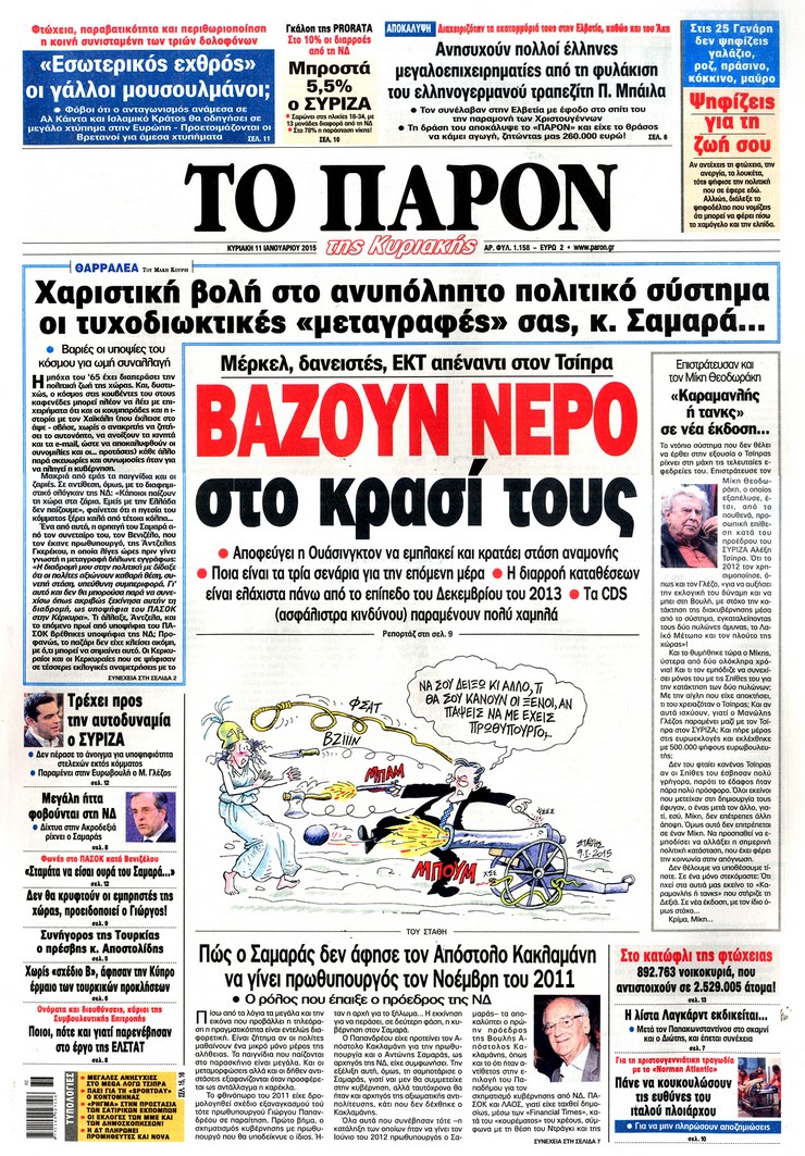 Διαβάστε στο zougla.gr τα πρωτοσέλιδα των κυριακάτικων εφημερίδων.