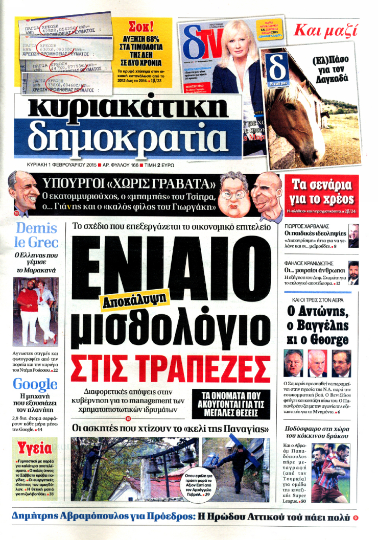 Tα πρωτοσέλιδα των κυριακάτικων εφημερίδων