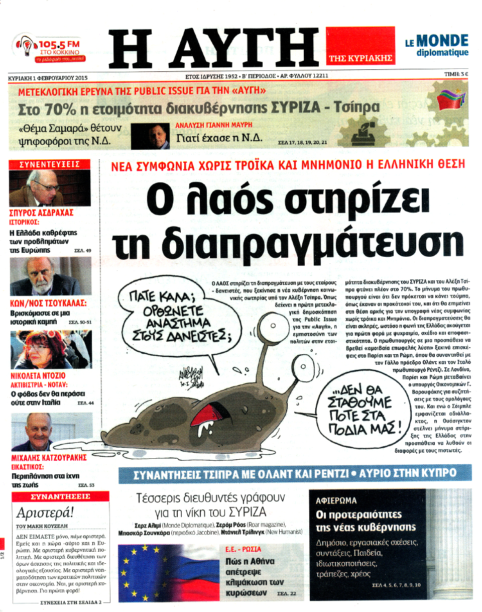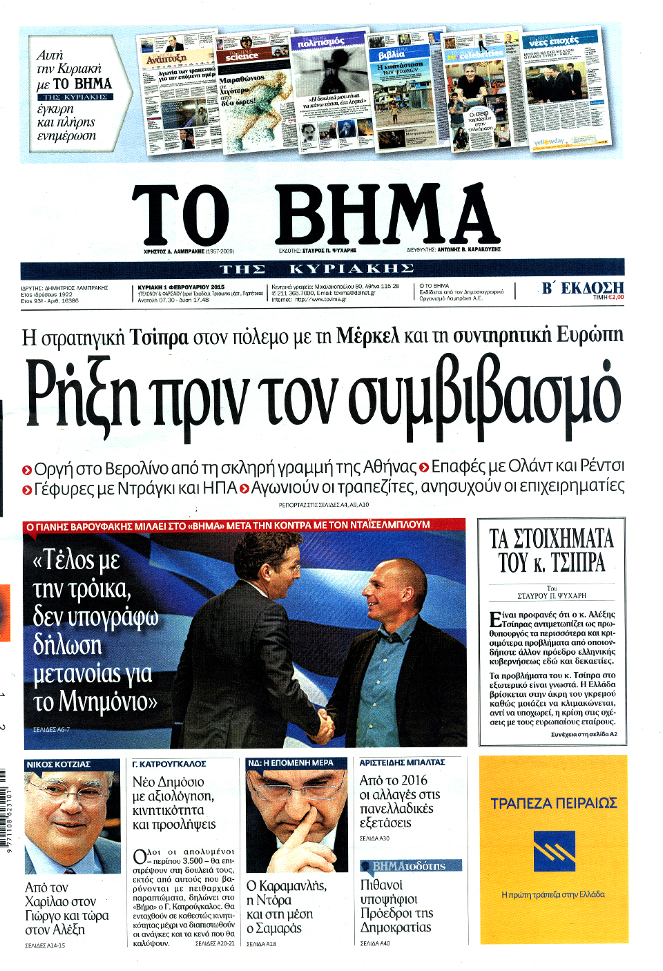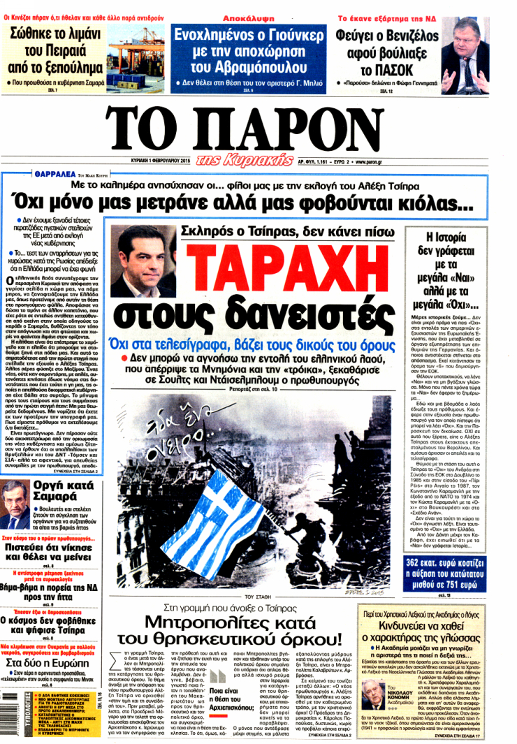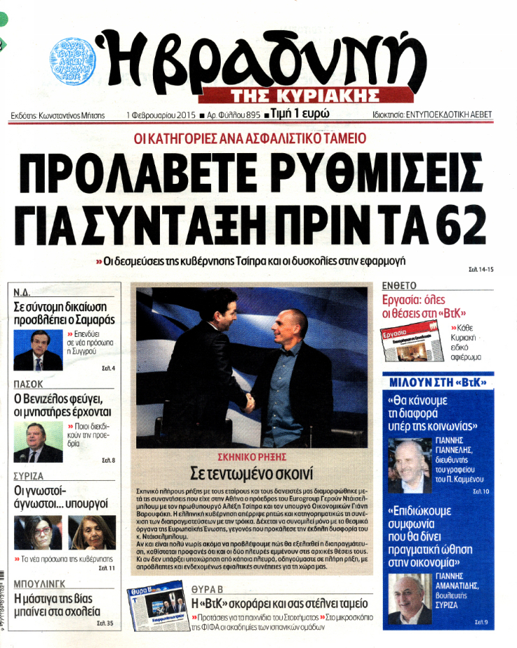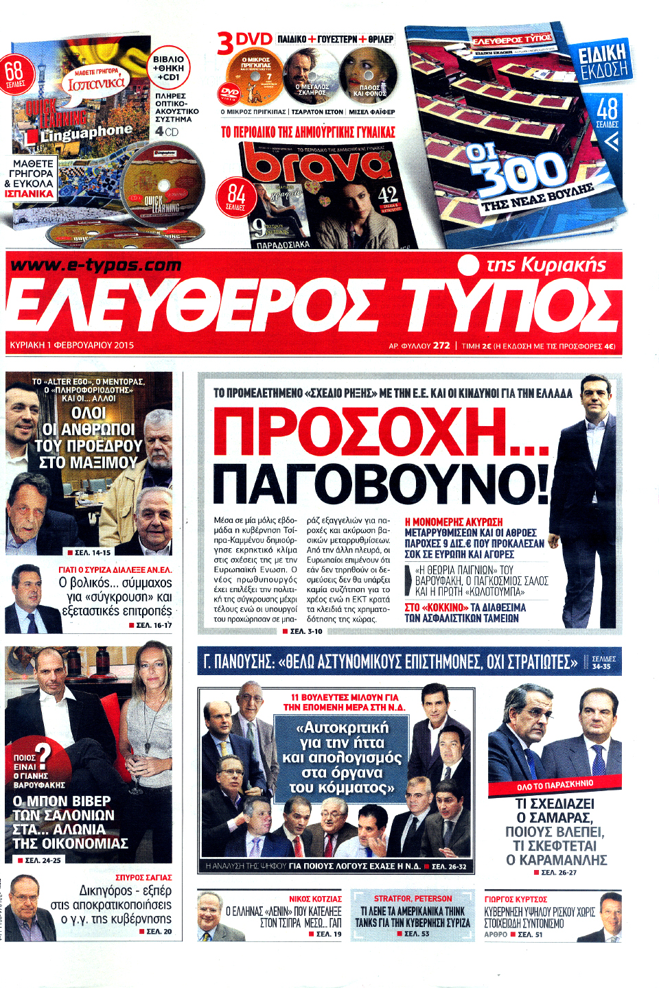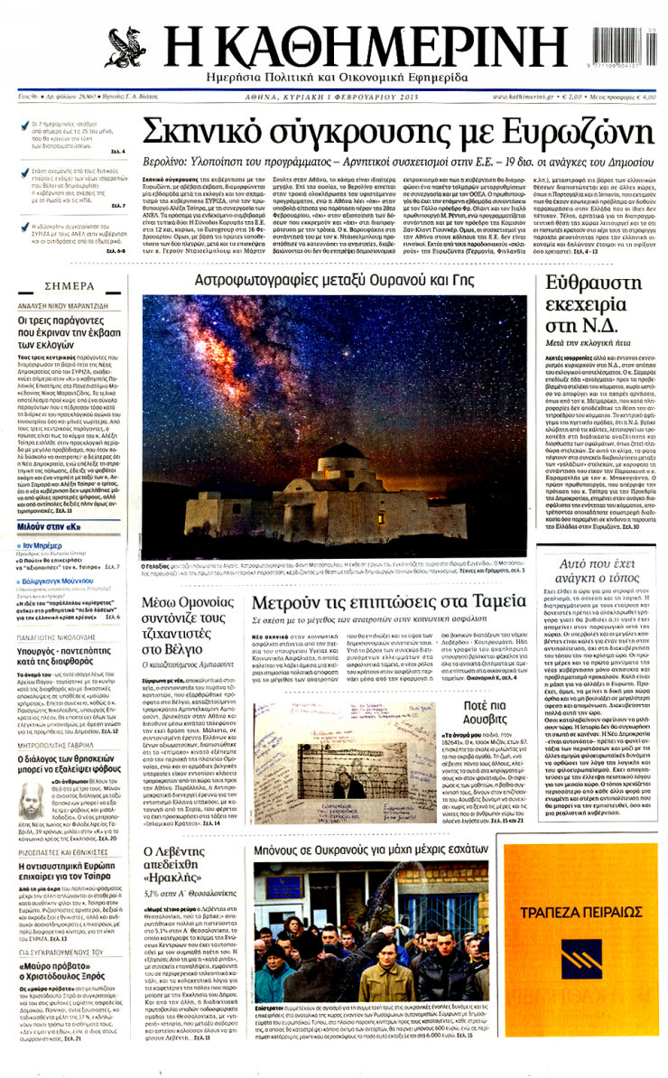 Διαβάστε στο zougla.gr τα πρωτοσέλιδα των κυριακάτικων εφημερίδων...