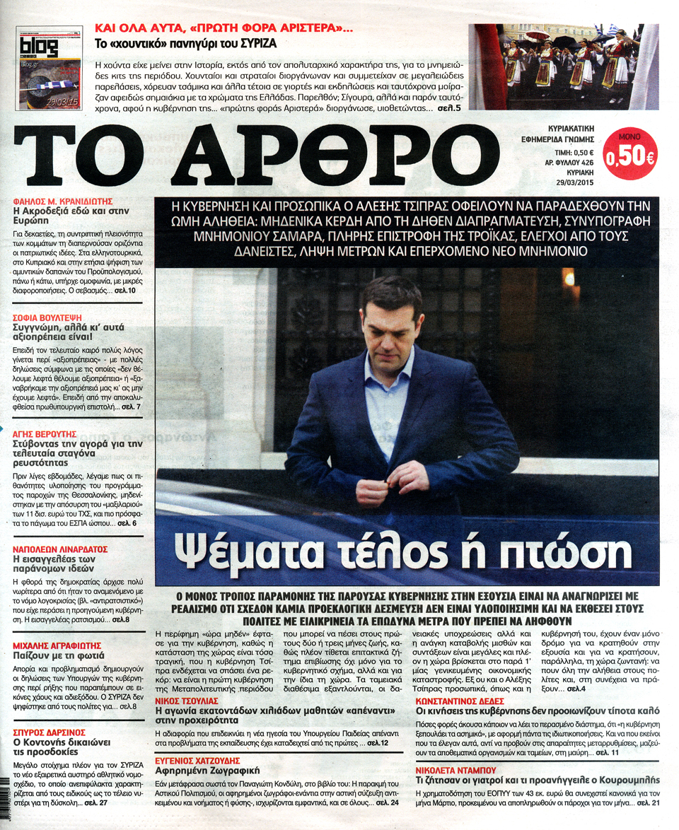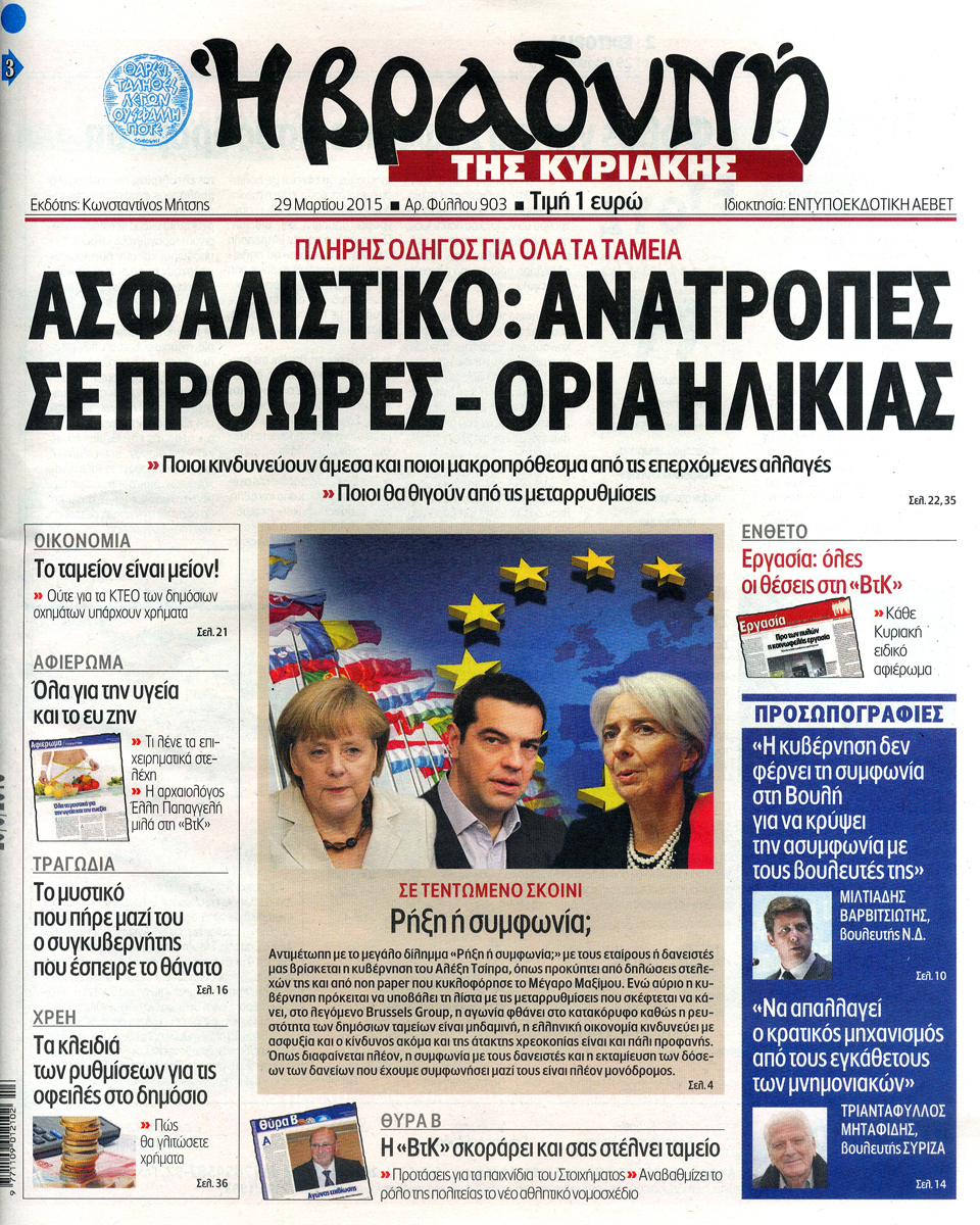 Διαβάστε τα πρωτοσέλιδα των κυριακάτικων εφημερίδων στο zougla.gr…