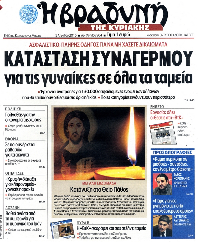 Η ΚΑΘΗΜΕΡΙΝΗ ΤΗΣ ΚΥΡΙΑΚΗΣ