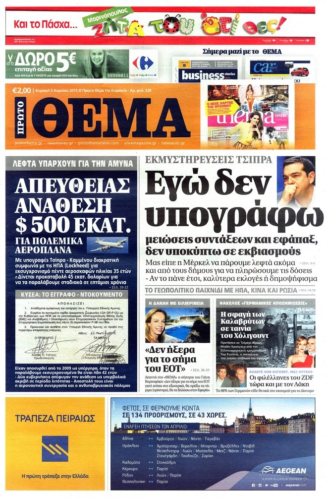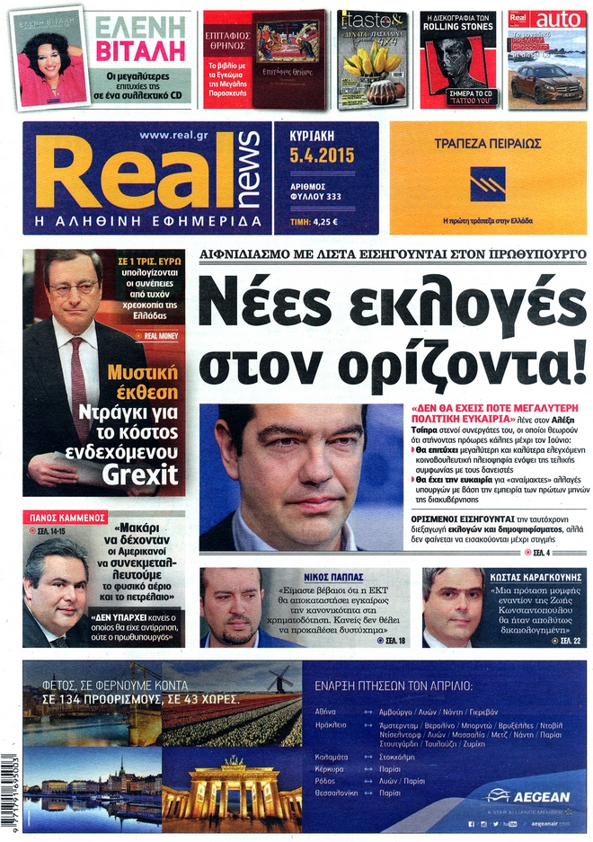 Διαβάστε τα πρωτοσέλιδα των κυριακάτικων εφημερίδων στο zougla.gr…