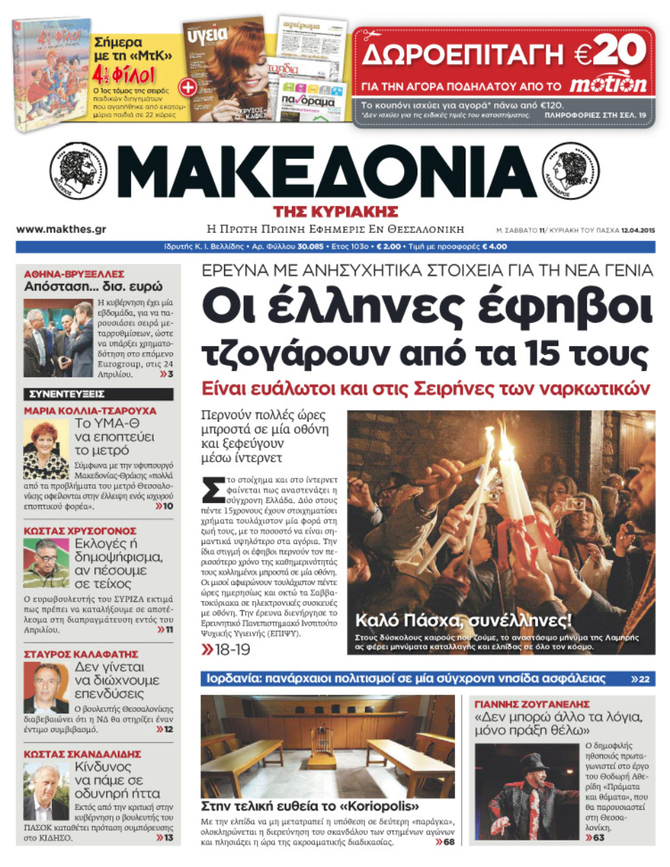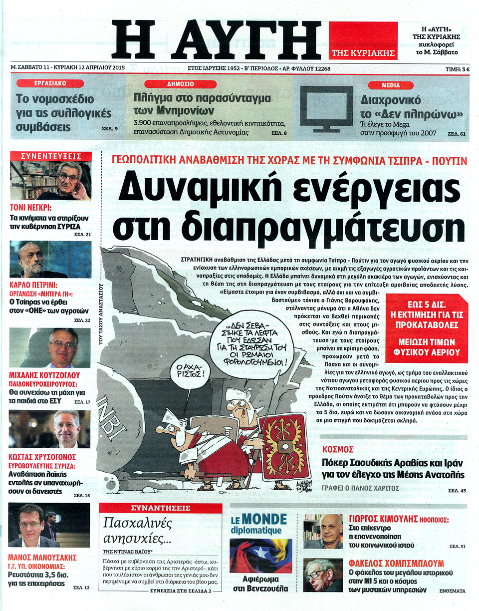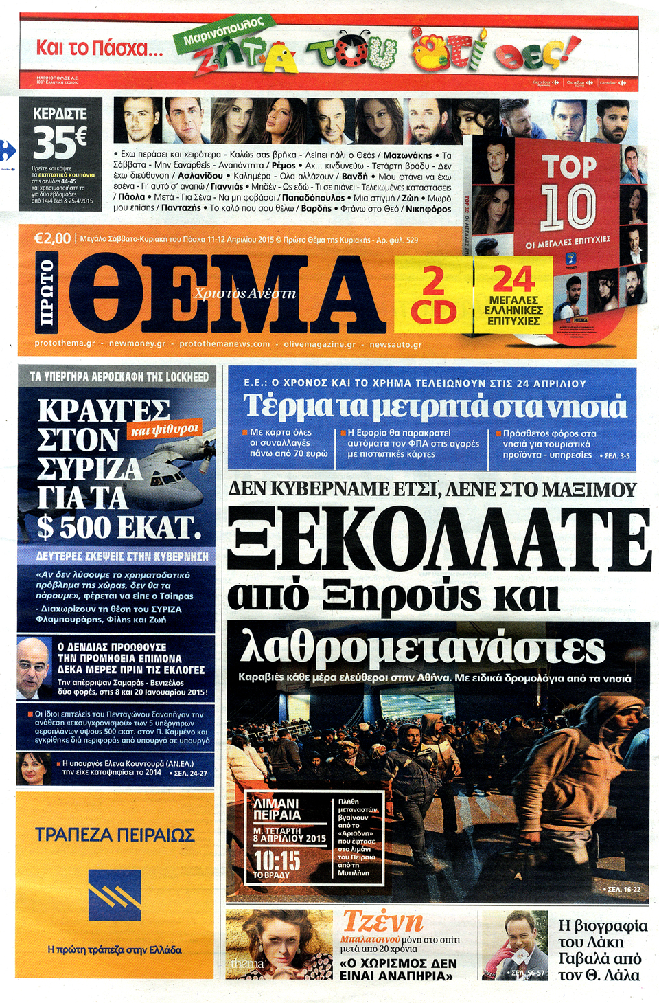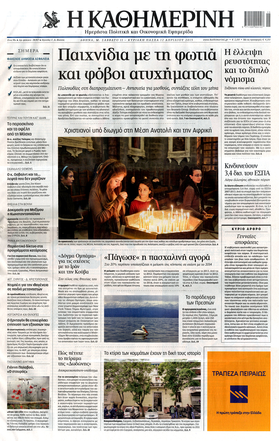 Διαβάστε στο zougla.gr τα πρωτοσέλιδα των κυριακάτικων εφημερίδων που κυκλοφορούν εκτάκτως το Μεγάλο Σάββατο.