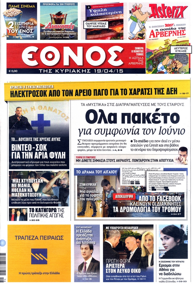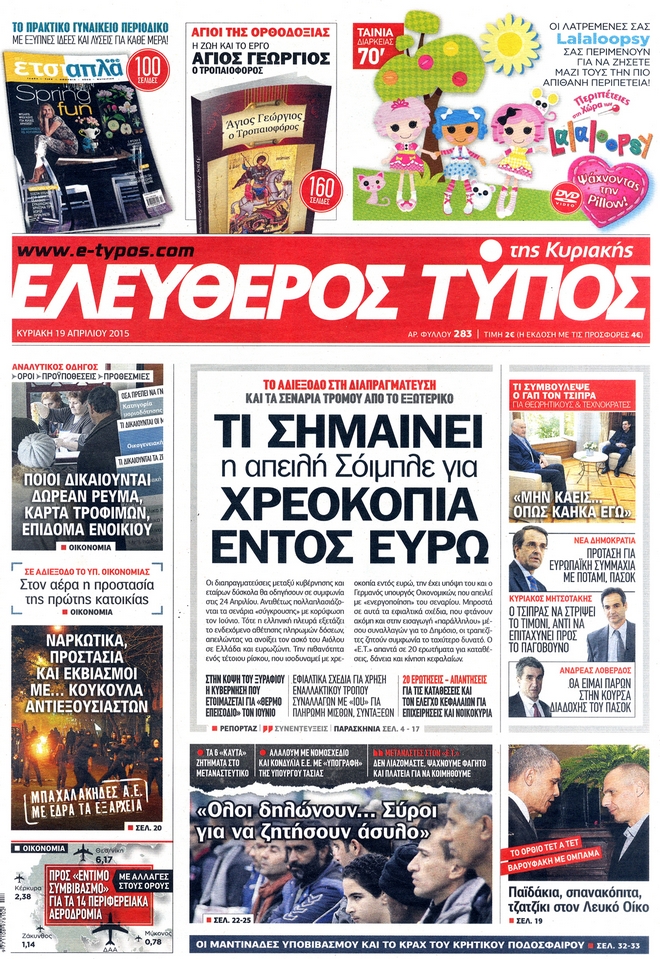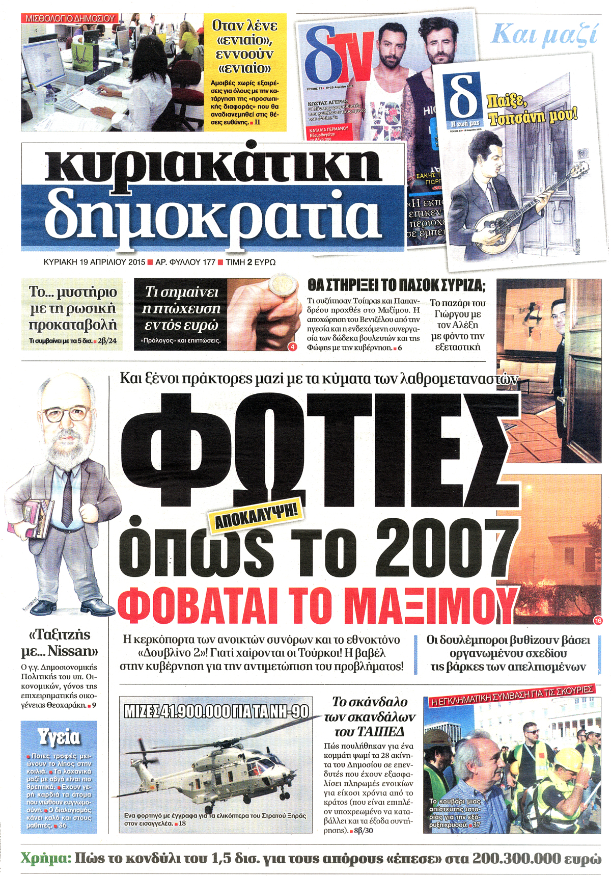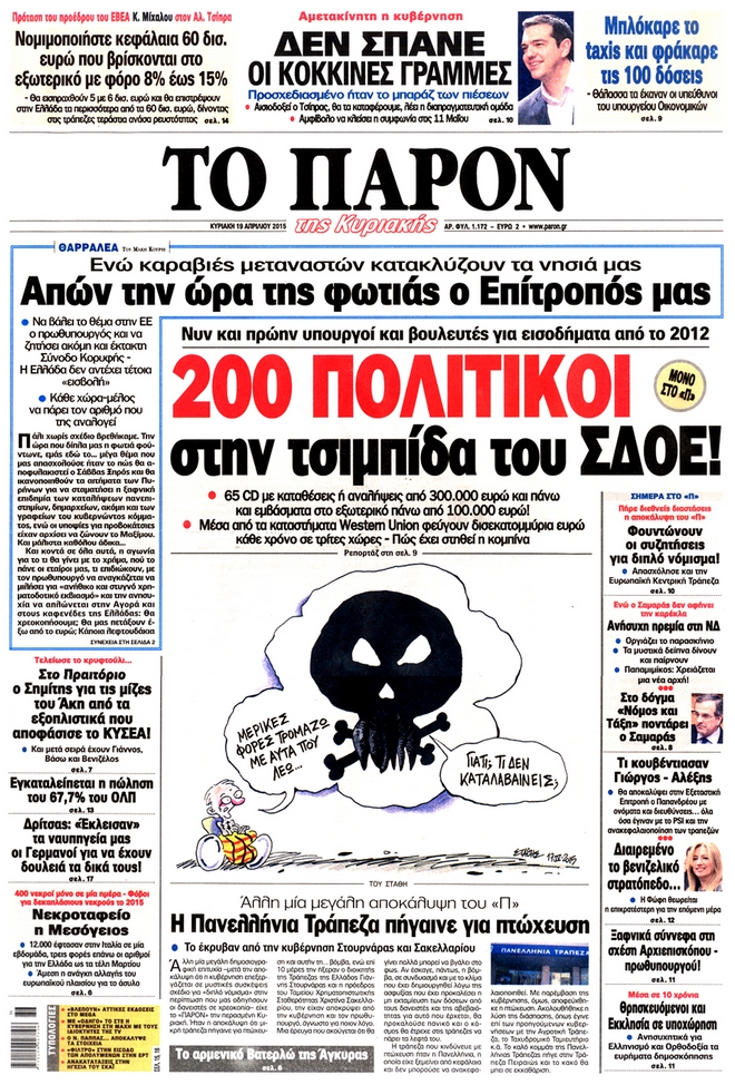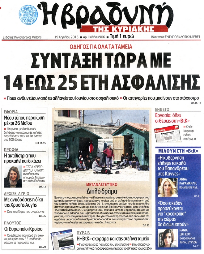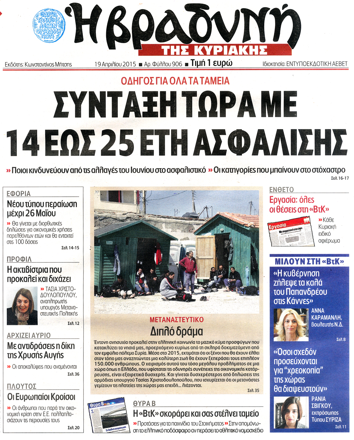 Τα πρωτοσέλιδα των κυριακάτικων εφημερίδων…