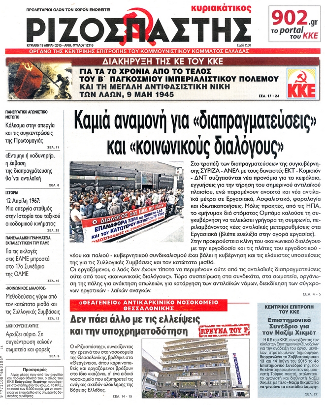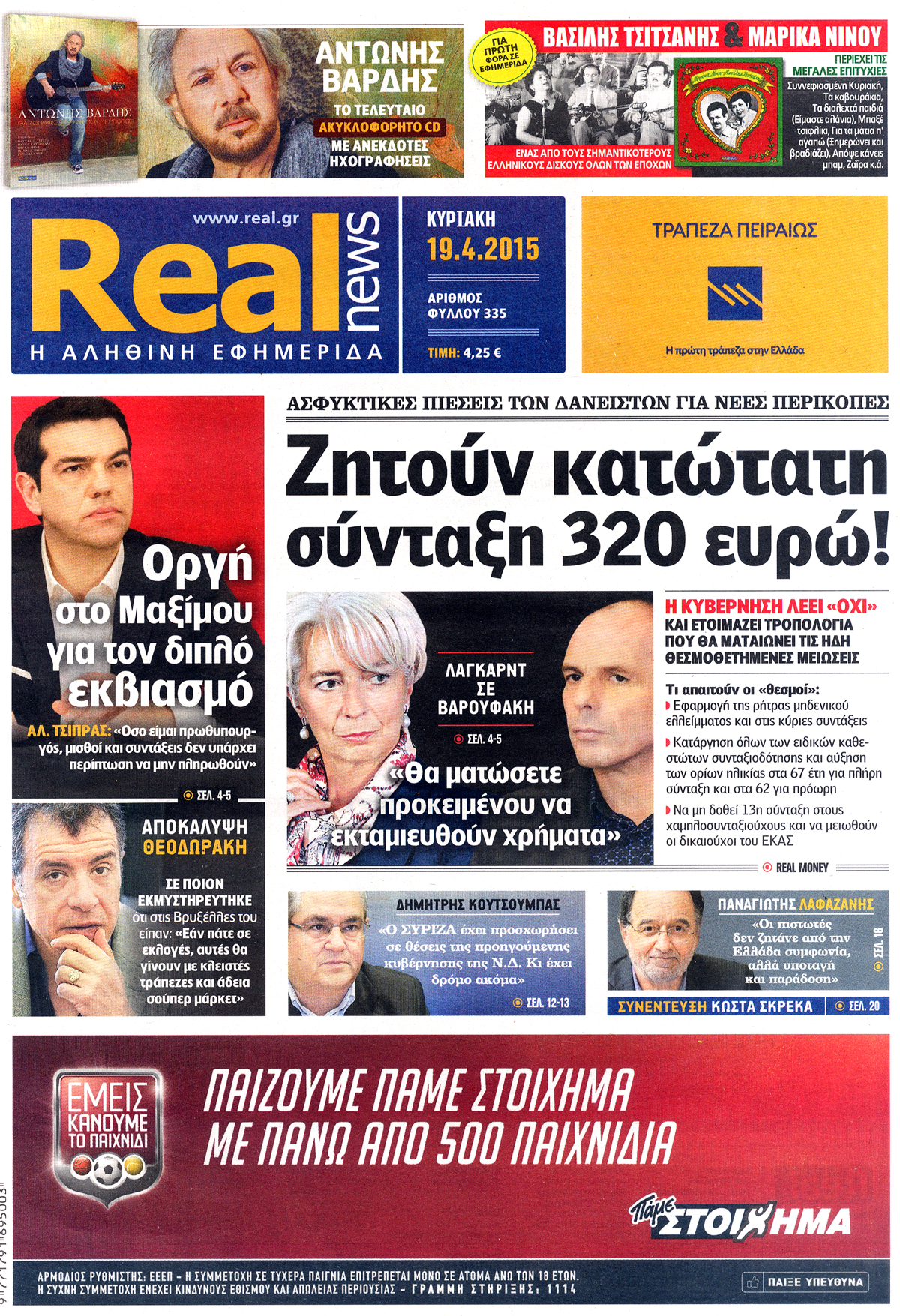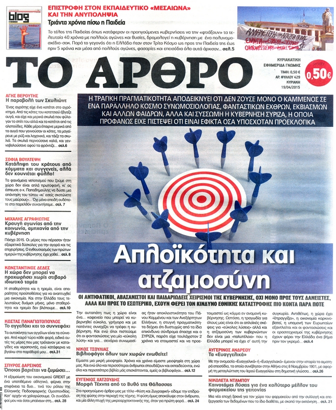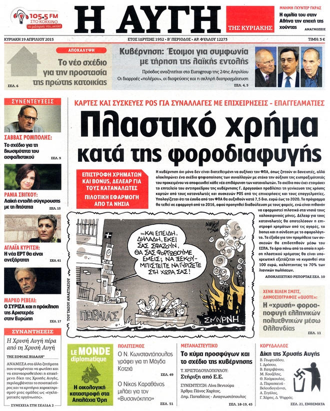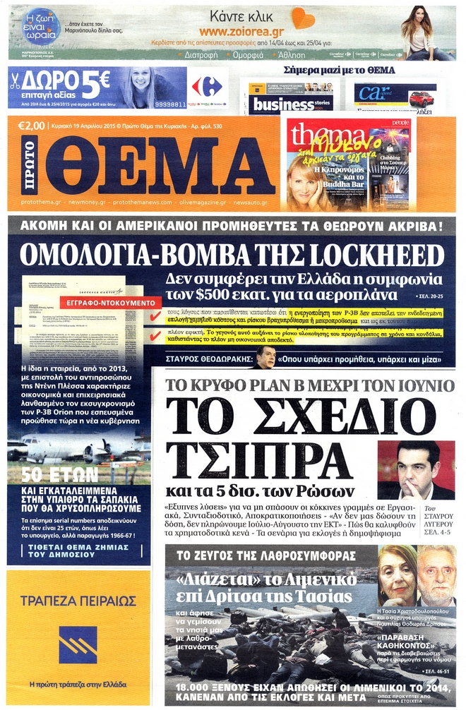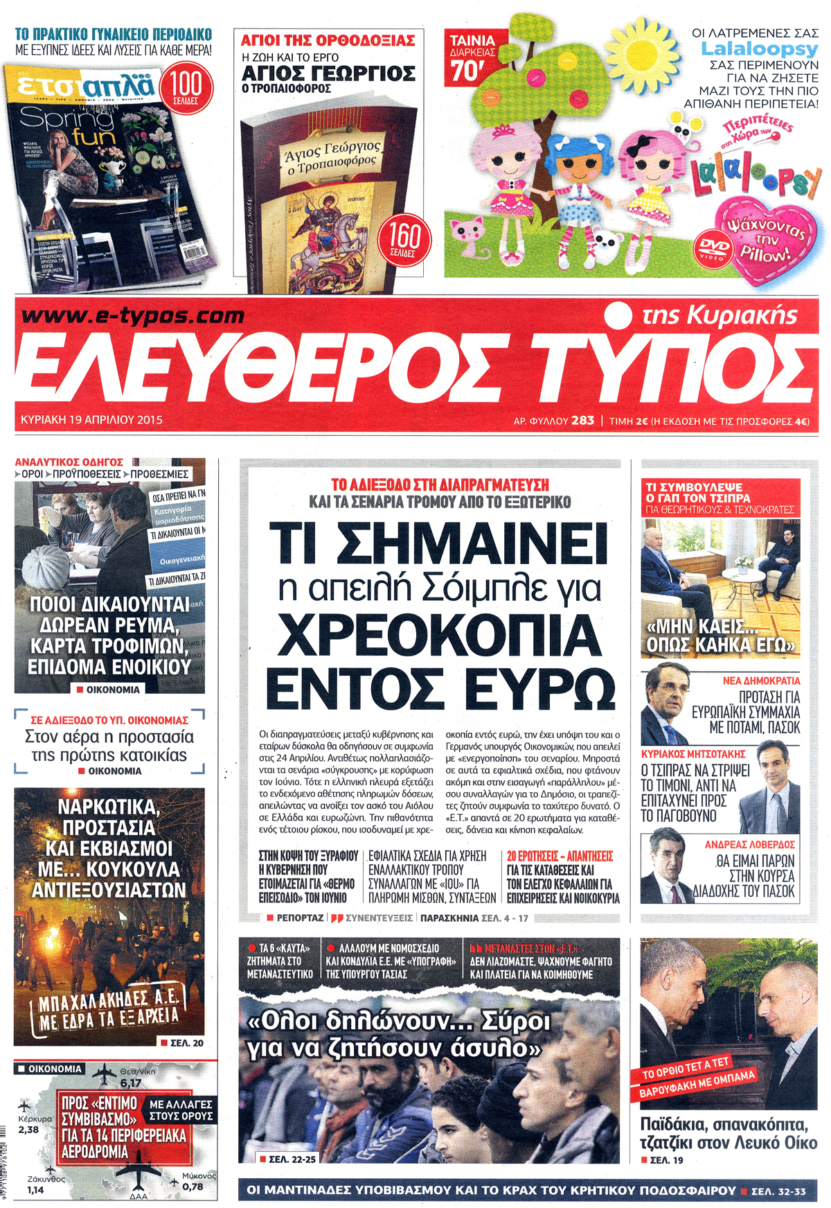 Διαβάστε στο zougla.gr τα πρωτοσέλιδα των κυριακάτικων εφημερίδων...
