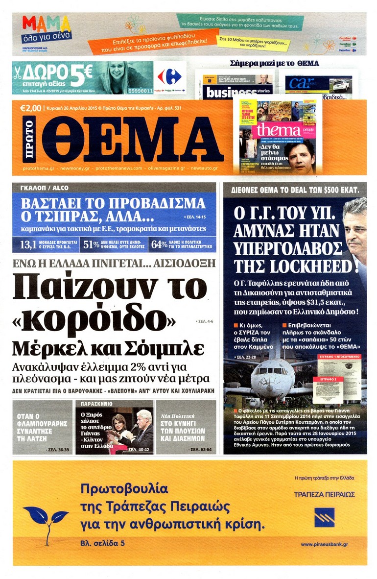 Διαβάστε στο zougla.gr τα πρωτοσέλιδα των κυριακάτικων εφημερίδων.