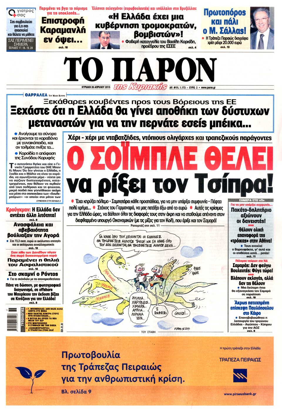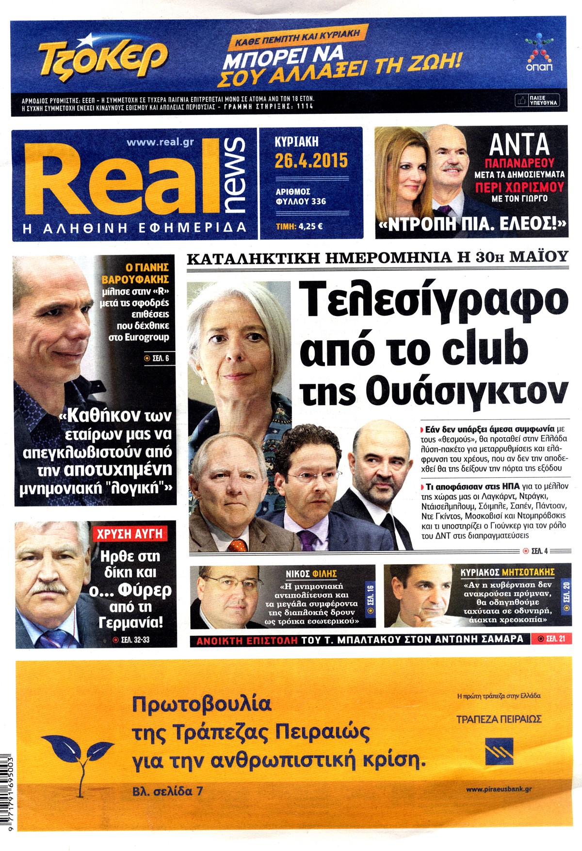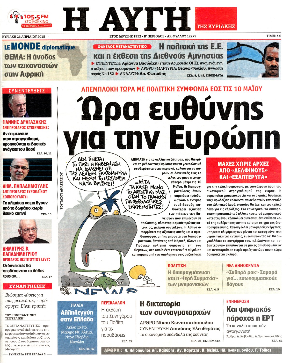 Διαβάστε στο zougla.gr τα πρωτοσέλιδα των κυριακάτικων εφημερίδων.