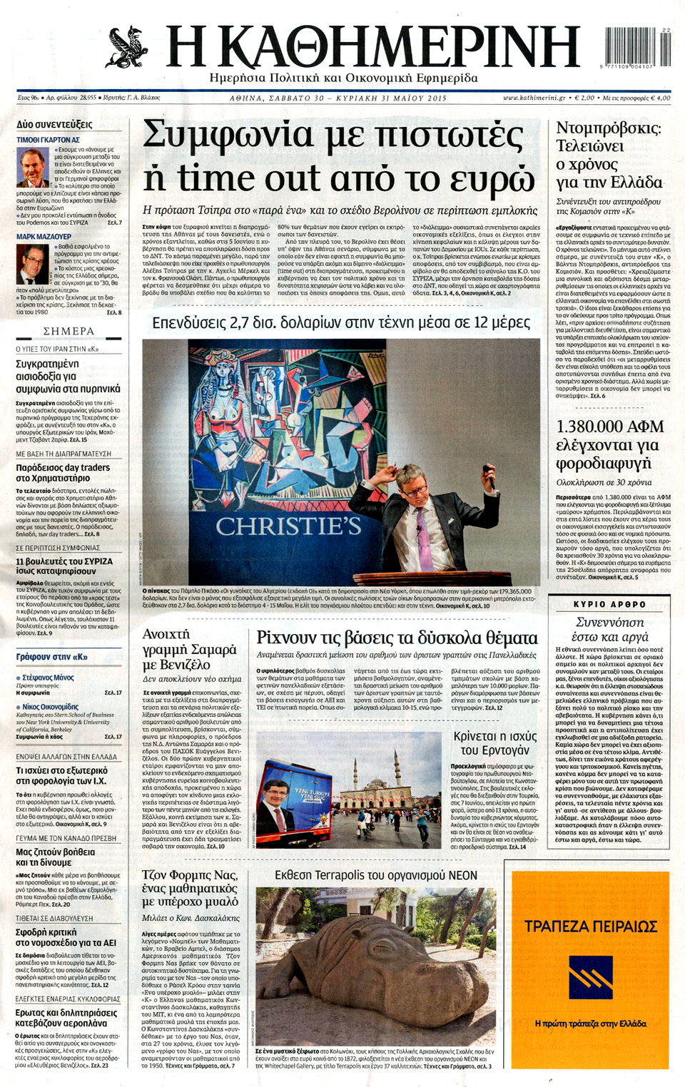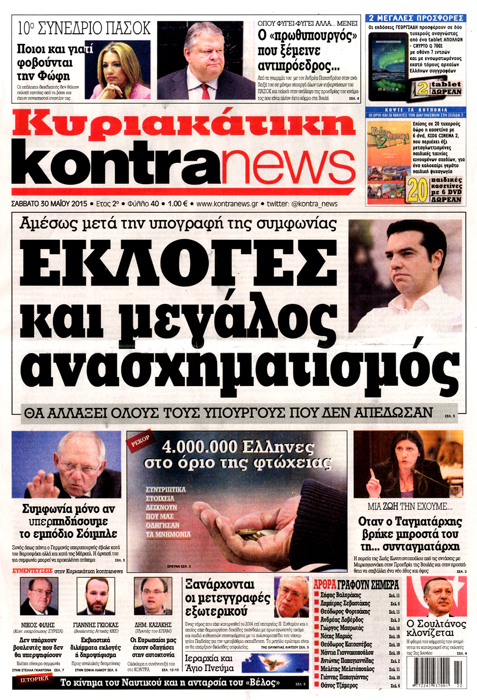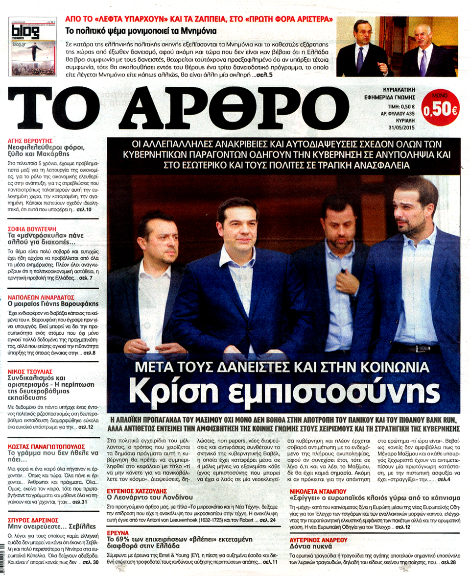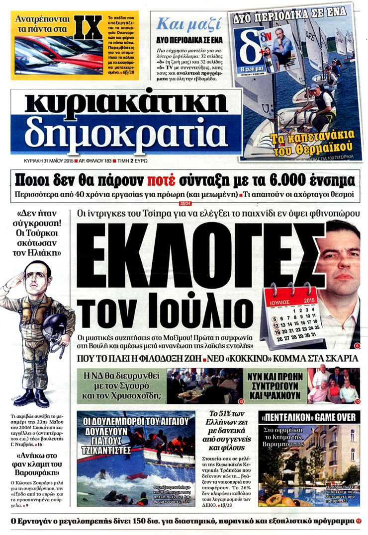 Διαβάστε τα πρωτοσέλιδα των κυριακάτικων εφημερίδων που κυκλοφορούν εκτάκτως στο zougla.gr…
