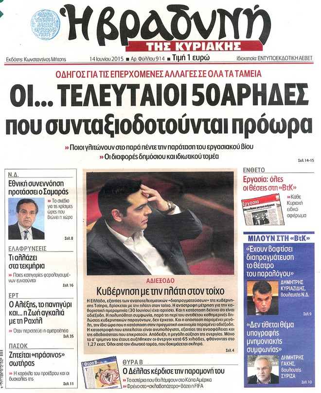 Διαβάστε τα πρωτοσέλιδα των κυριακάτικων εφημερίδων στο zougla.gr…