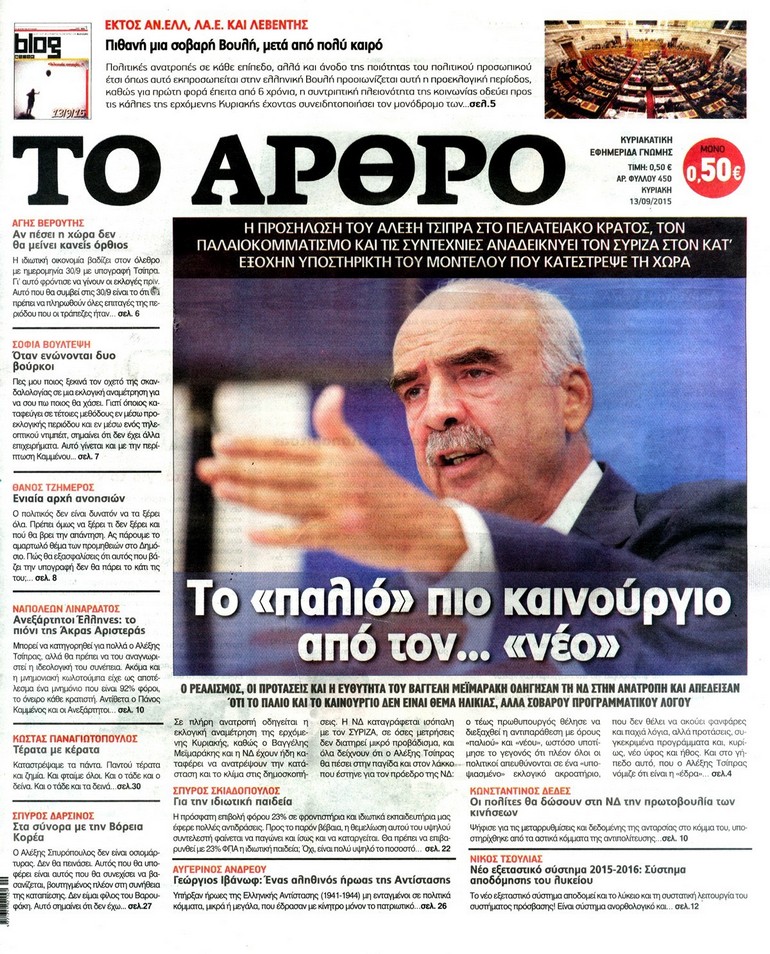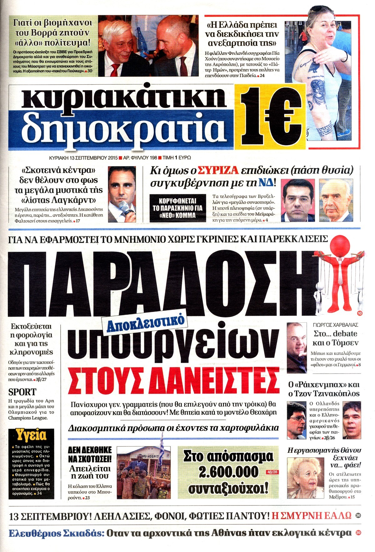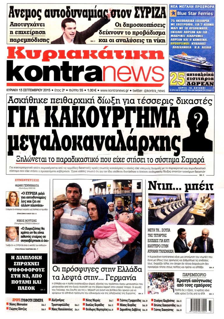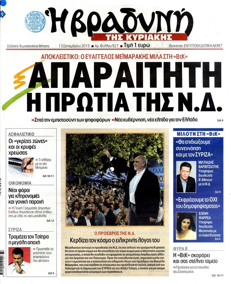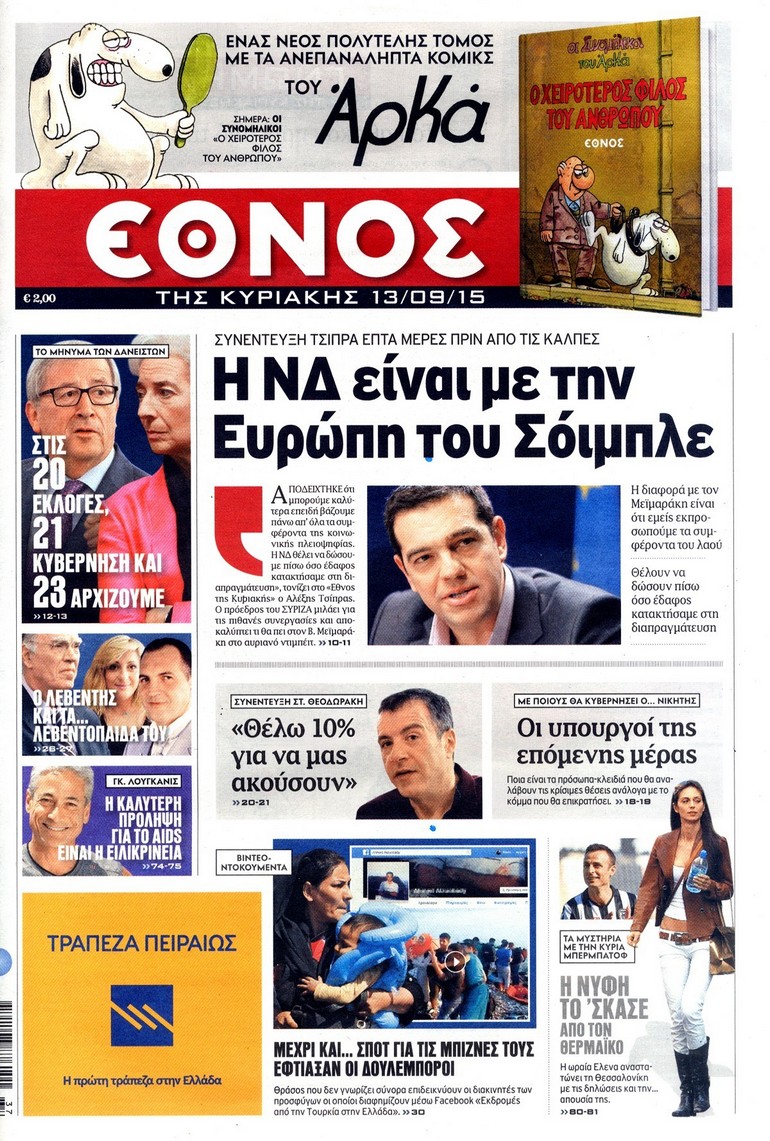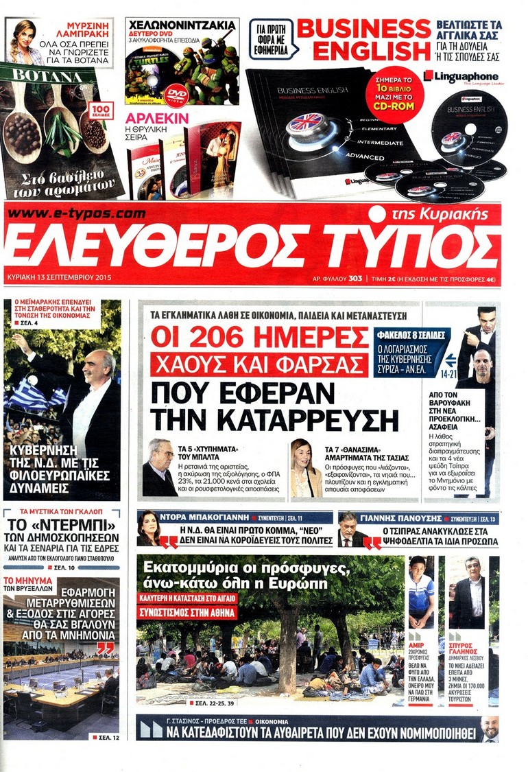 Τα πρωτοσέλιδα των κυριακάτικων εφημερίδων