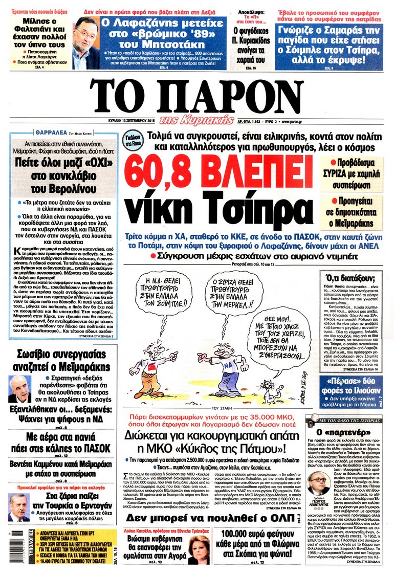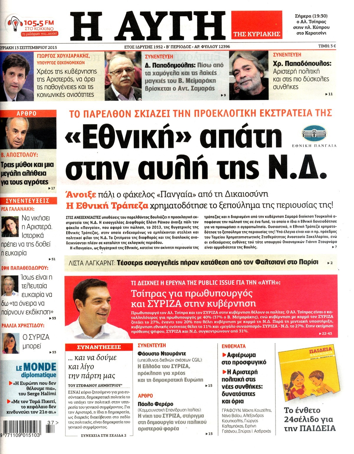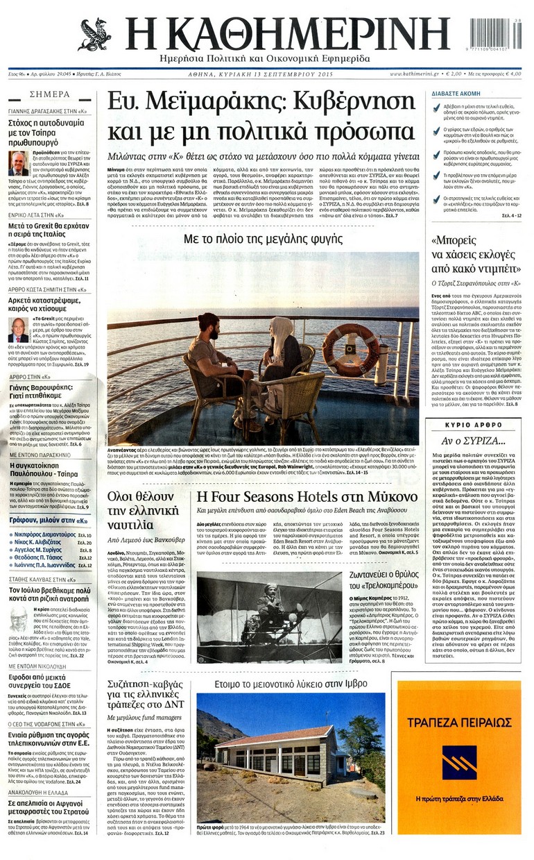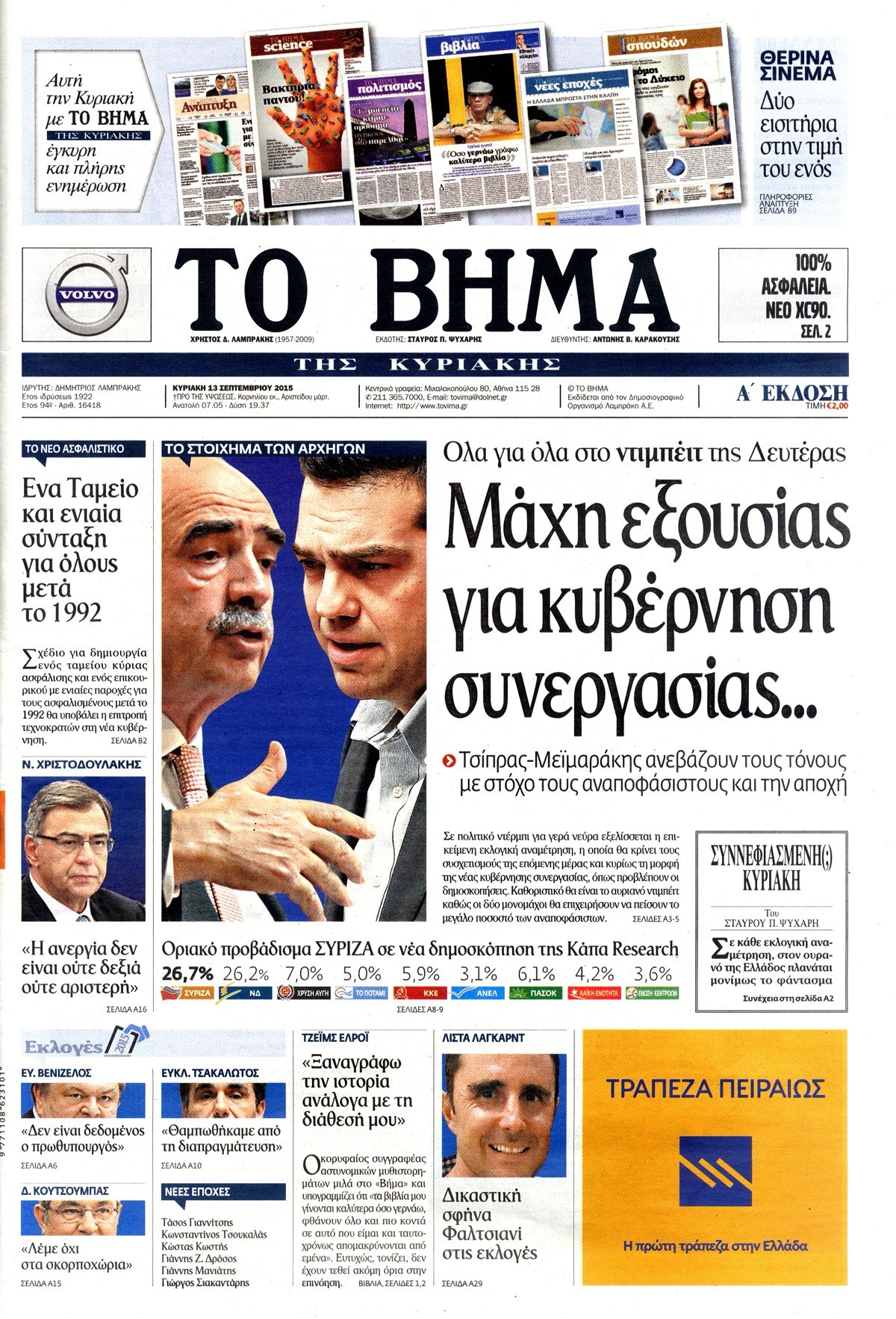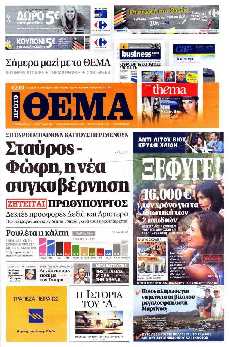 Τα πρωτοσέλιδα των κυριακάτικων εφημερίδων