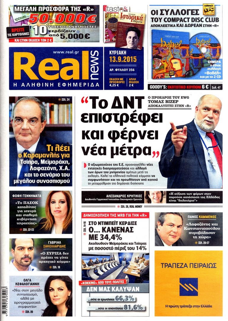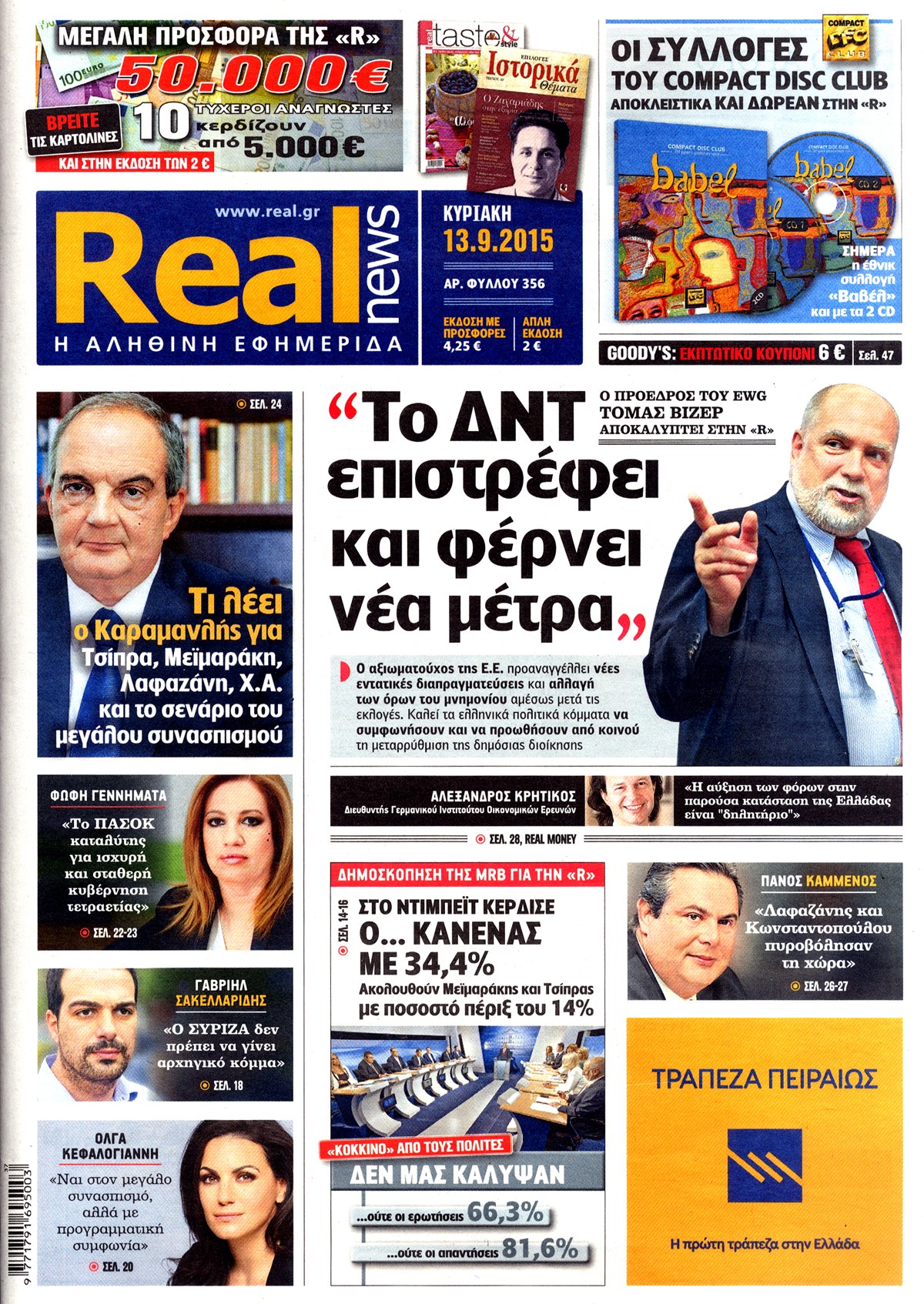 Διαβάστε στο zougla.gr τα πρωτοσέλιδα των κυριακάτικων εφημερίδων: