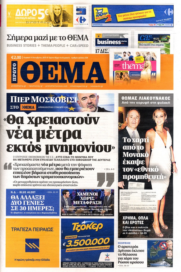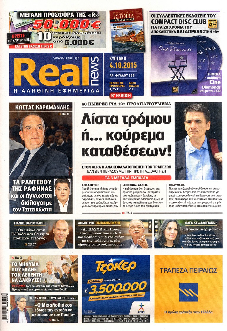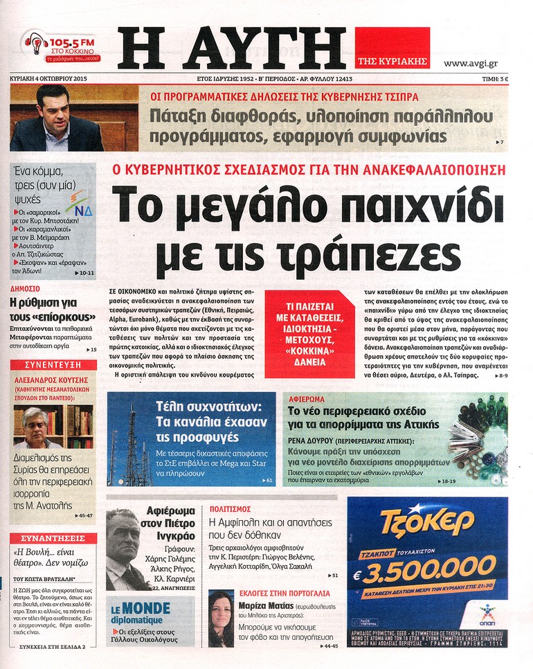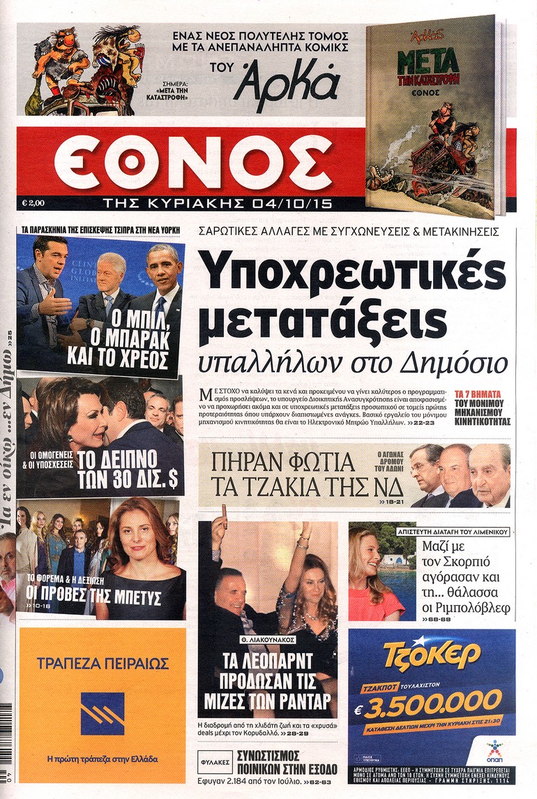 Διαβάστε στο zougla.gr τα πρωτοσέλιδα των κυριακάτικων εφημερίδων: