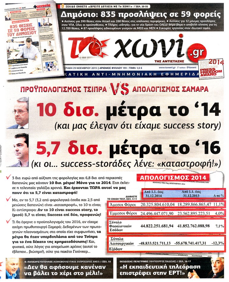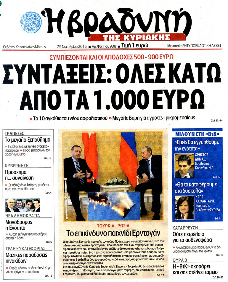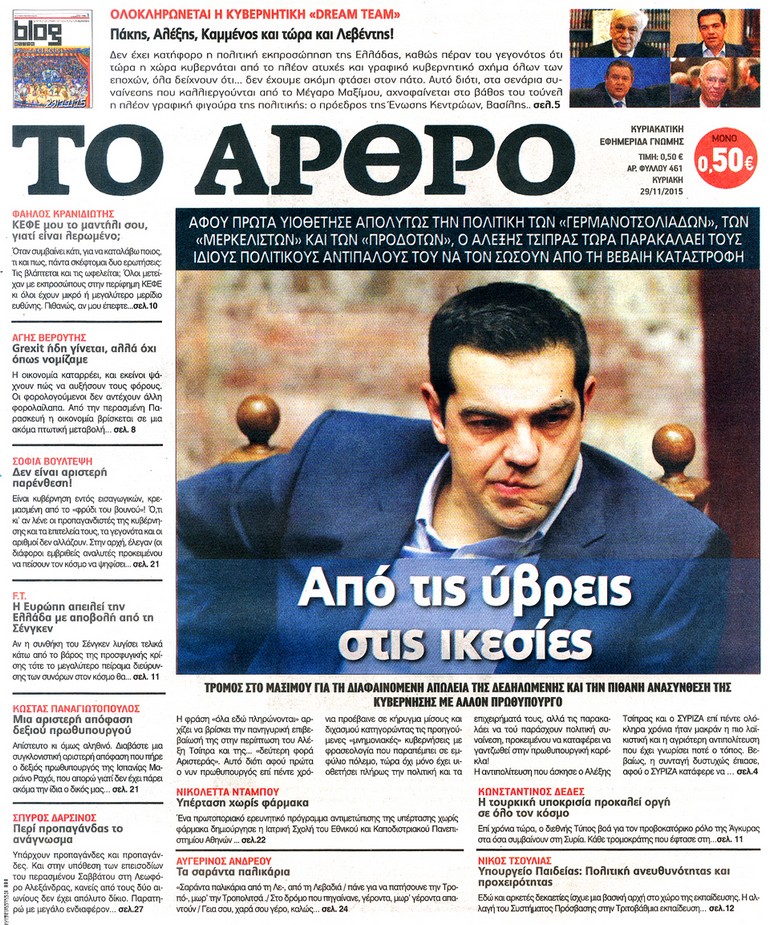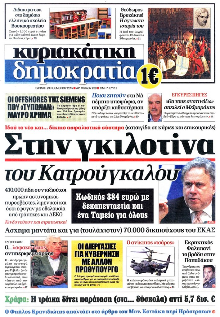 Διαβάστε στο zougla.gr τα πρωτοσέλιδα των κυριακάτικων εφημερίδων: