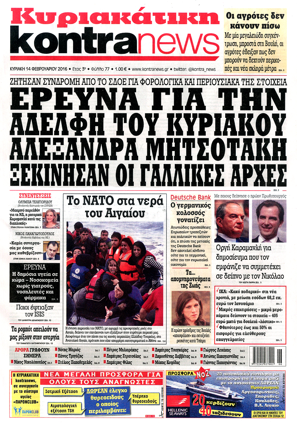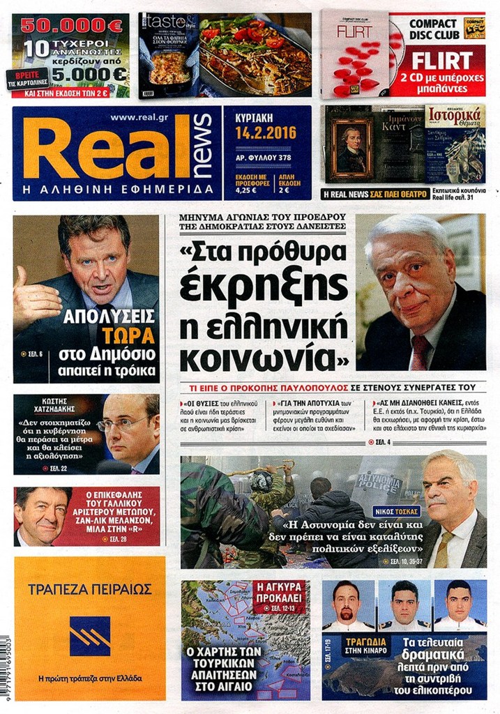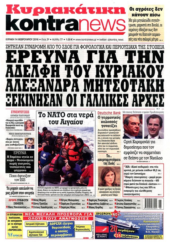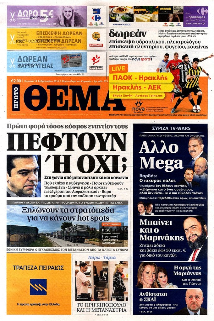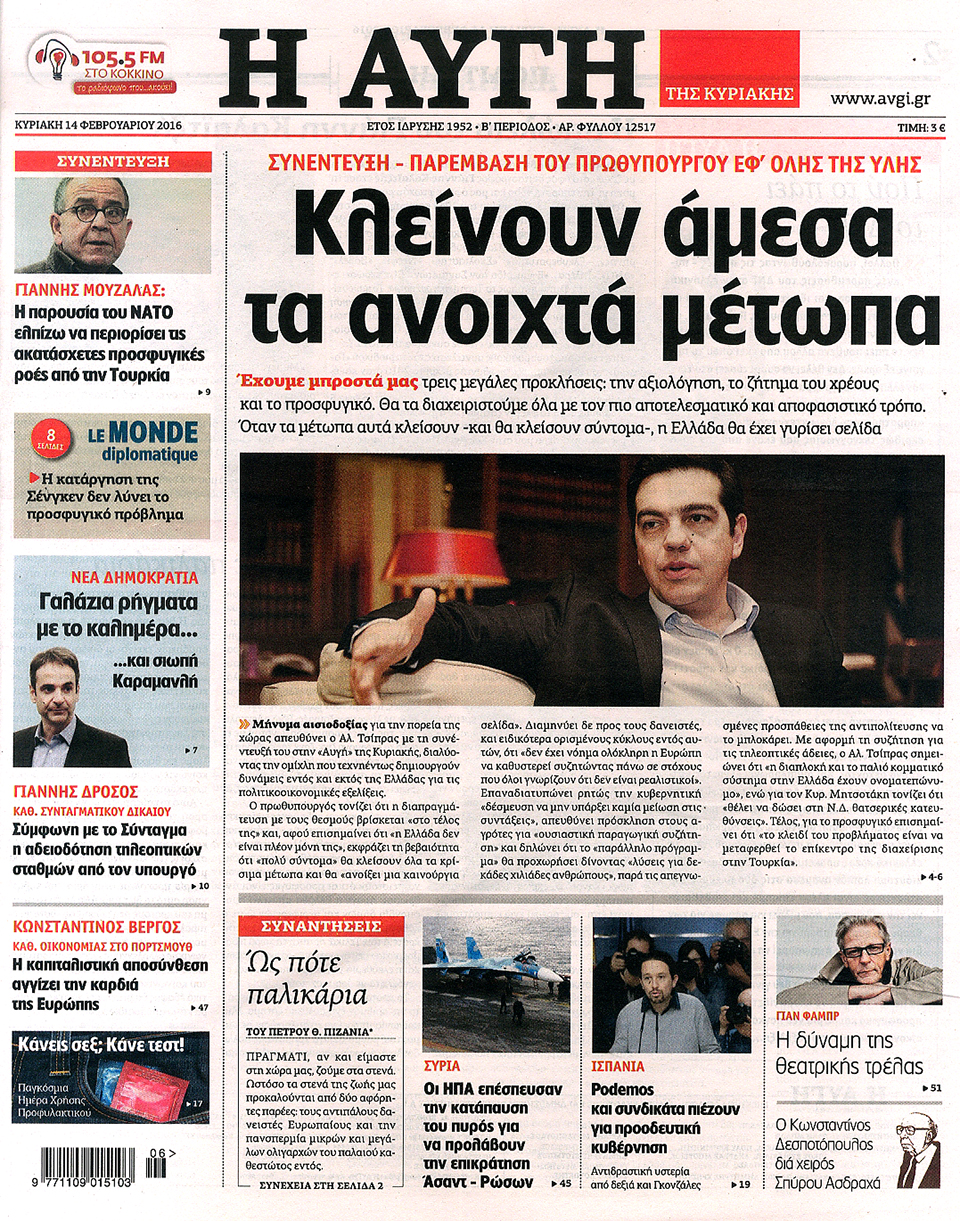 Διαβάστε τα πρωτοσέλιδα των κυριακάτικων εφημερίδων στο zougla.gr: