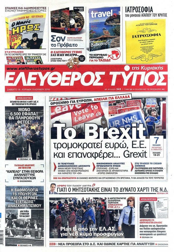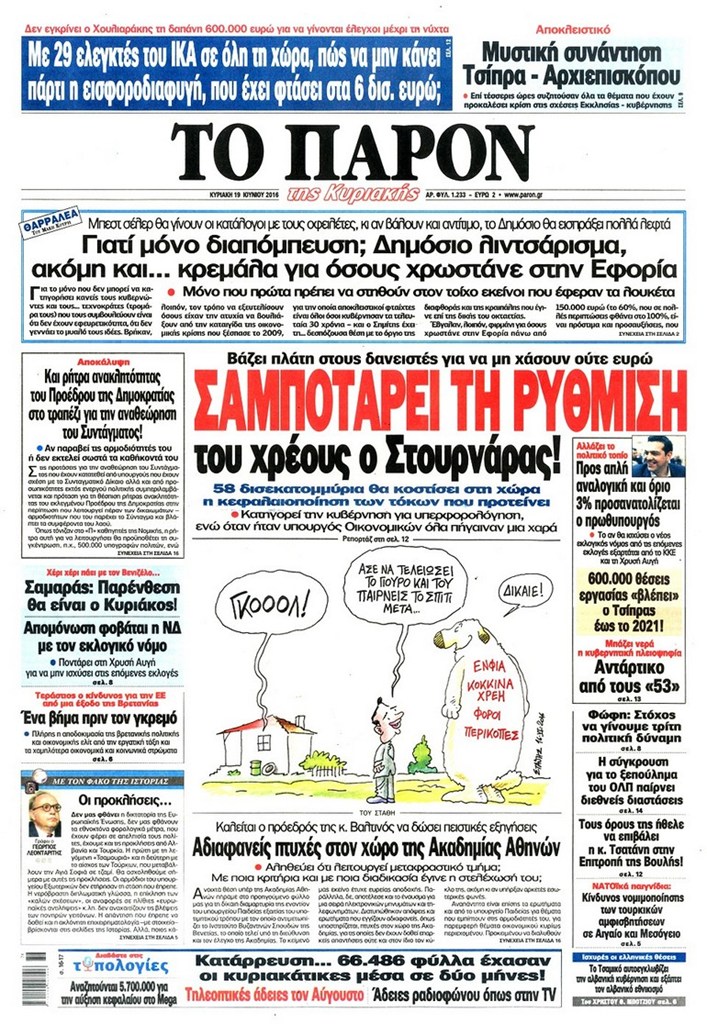 Διαβάστε στο zougla.gr τα πρωτοσέλιδα των κυριακάτικων εφημερίδων τα οποία κυκλοφορούν εκτάκτως.