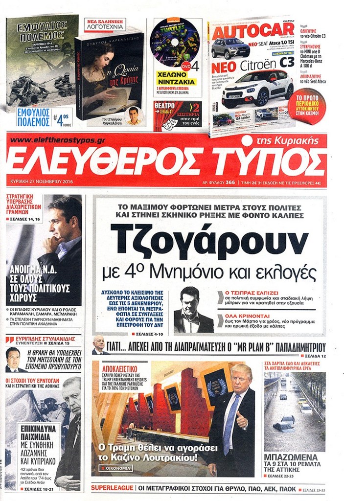 Tα πρωτοσέλιδα των κυριακάτικων εφημερίδων στο zougla.gr: