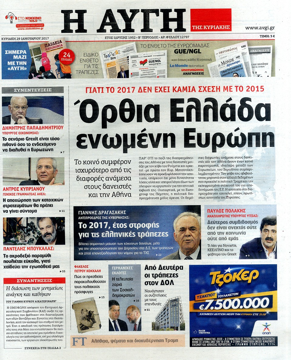 Διαβάστε τα πρωτοσέλιδα των κυριακάτικων εφημερίδων στο zougla.gr: