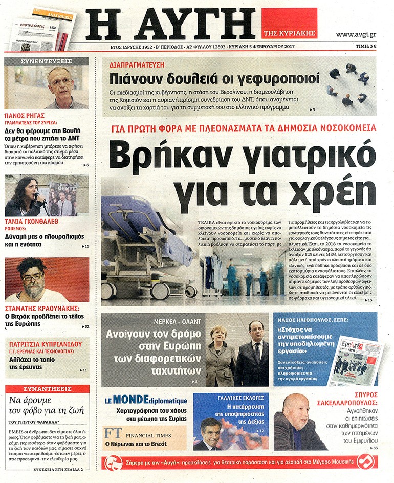 Διαβάστε τα πρωτοσέλιδα των κυριακάτικων εφημερίδων στο zougla.gr: