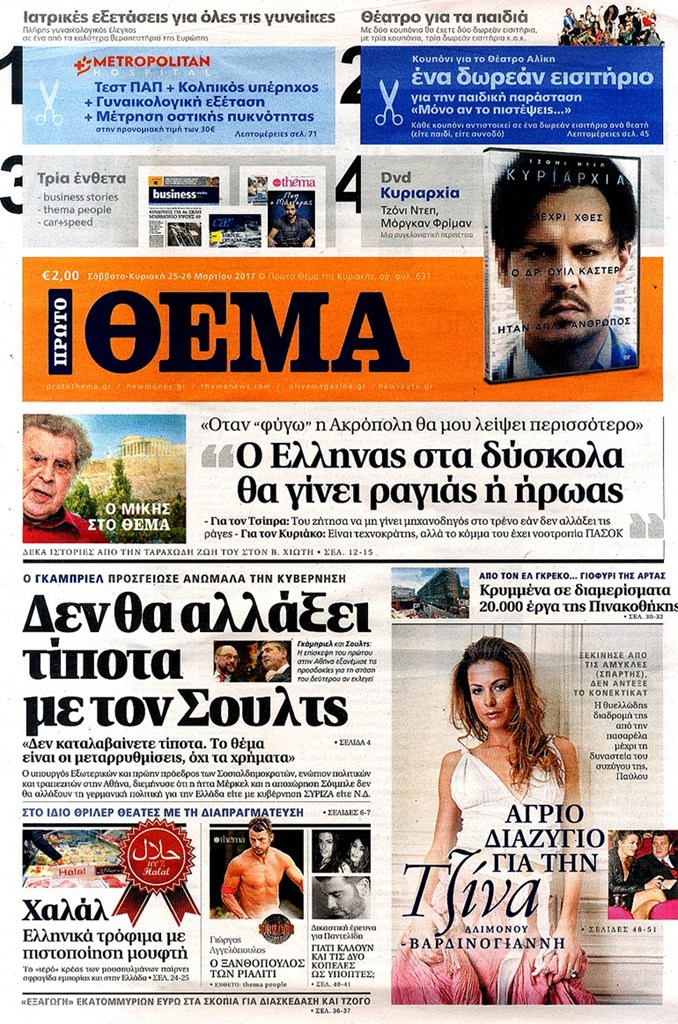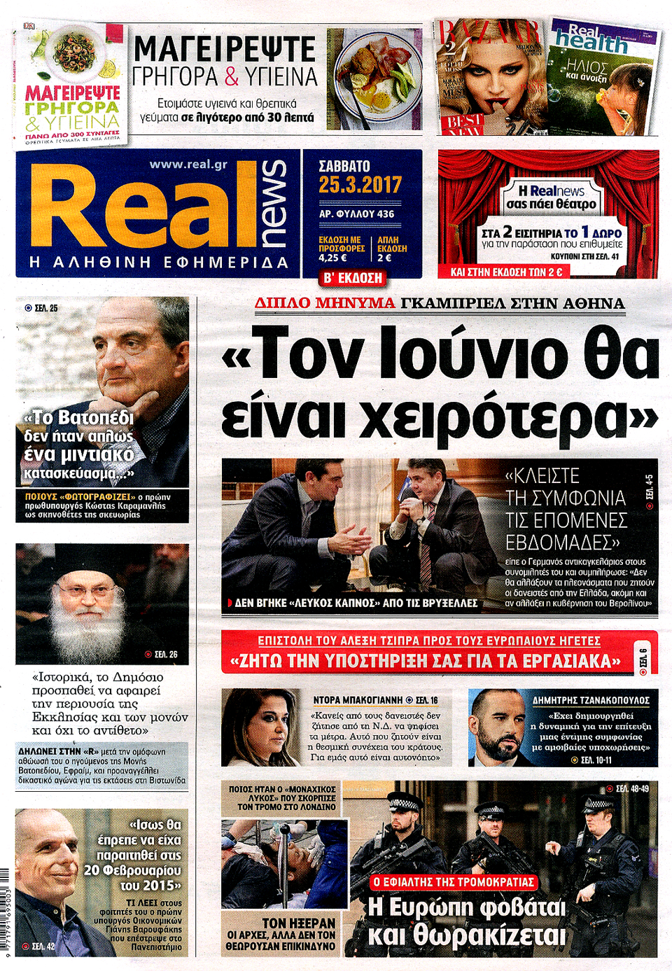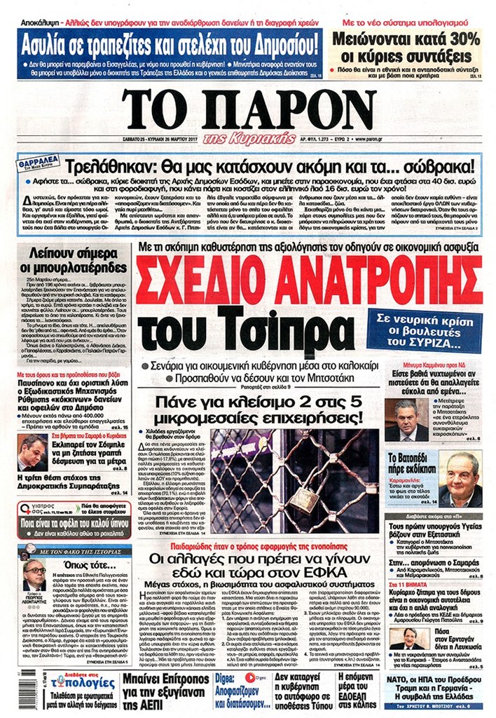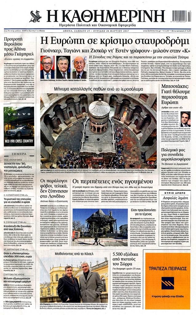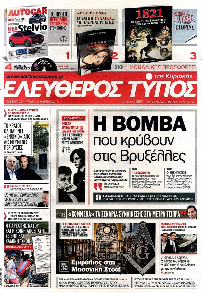 Διαβάστε τα πρωτοσέλιδα των κυριακάτικων εφημερίδων στο zougla.gr τα οποία κυκλοφορούν εκτάκτως το Σάββατο 25 Mαρτίου…