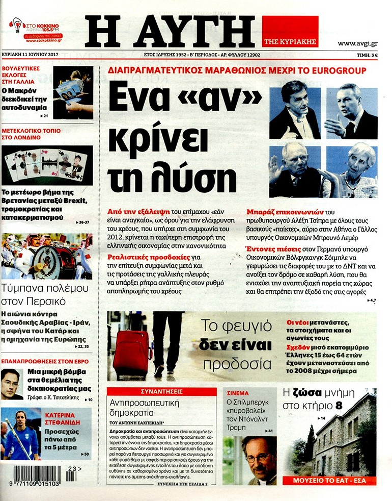 Διαβάστε τα πρωτοσέλιδα των κυριακάτικων εφημερίδων στο zougla.gr: