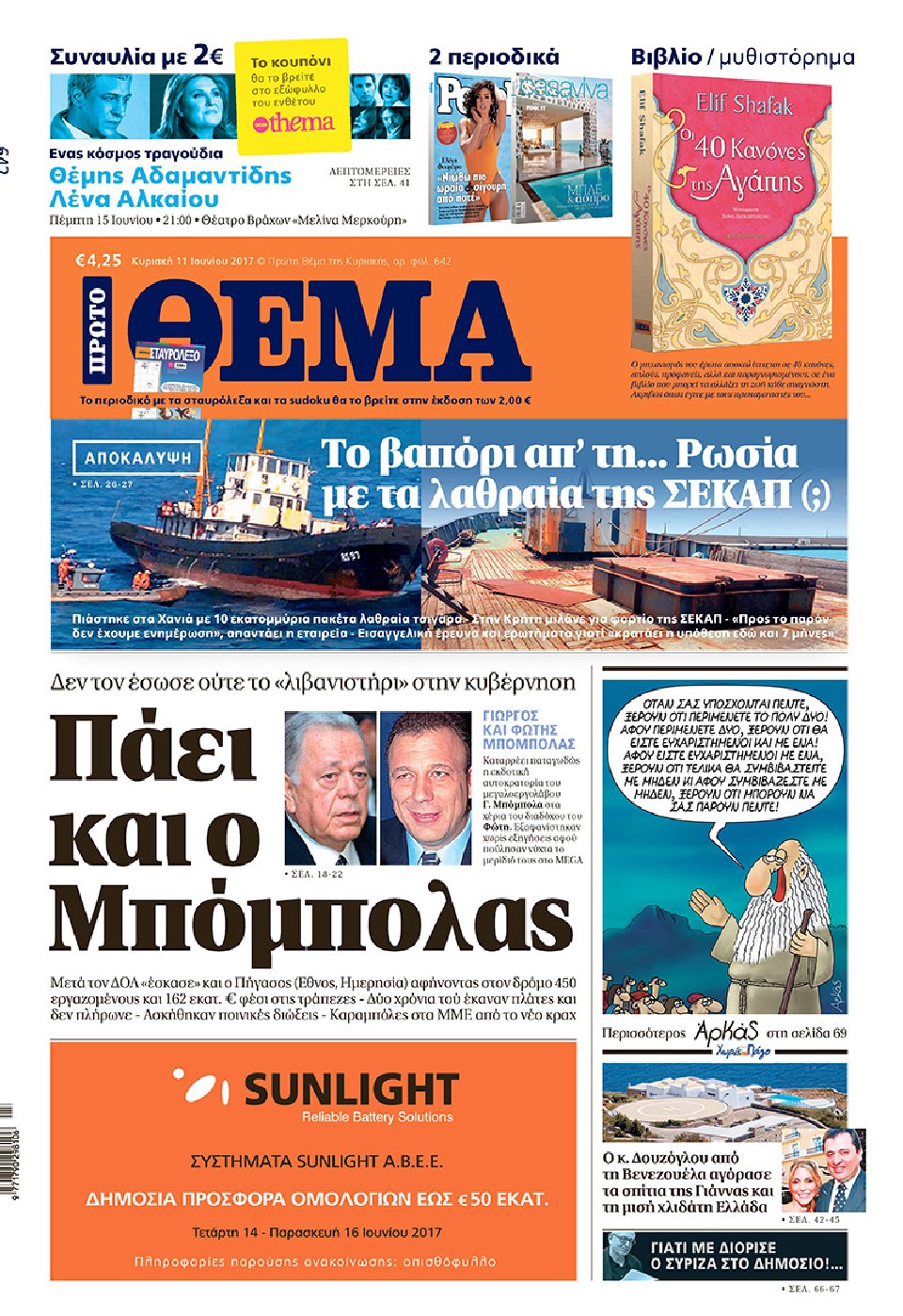 ΚΥΡΙΑΚΑΤΙΚΗ ΕΦΗΜΕΡΙΔΑ