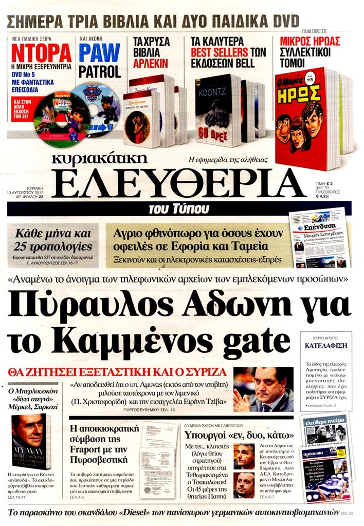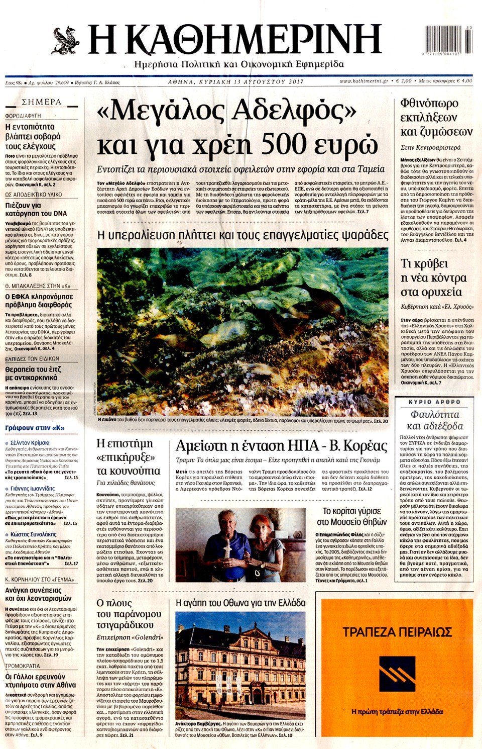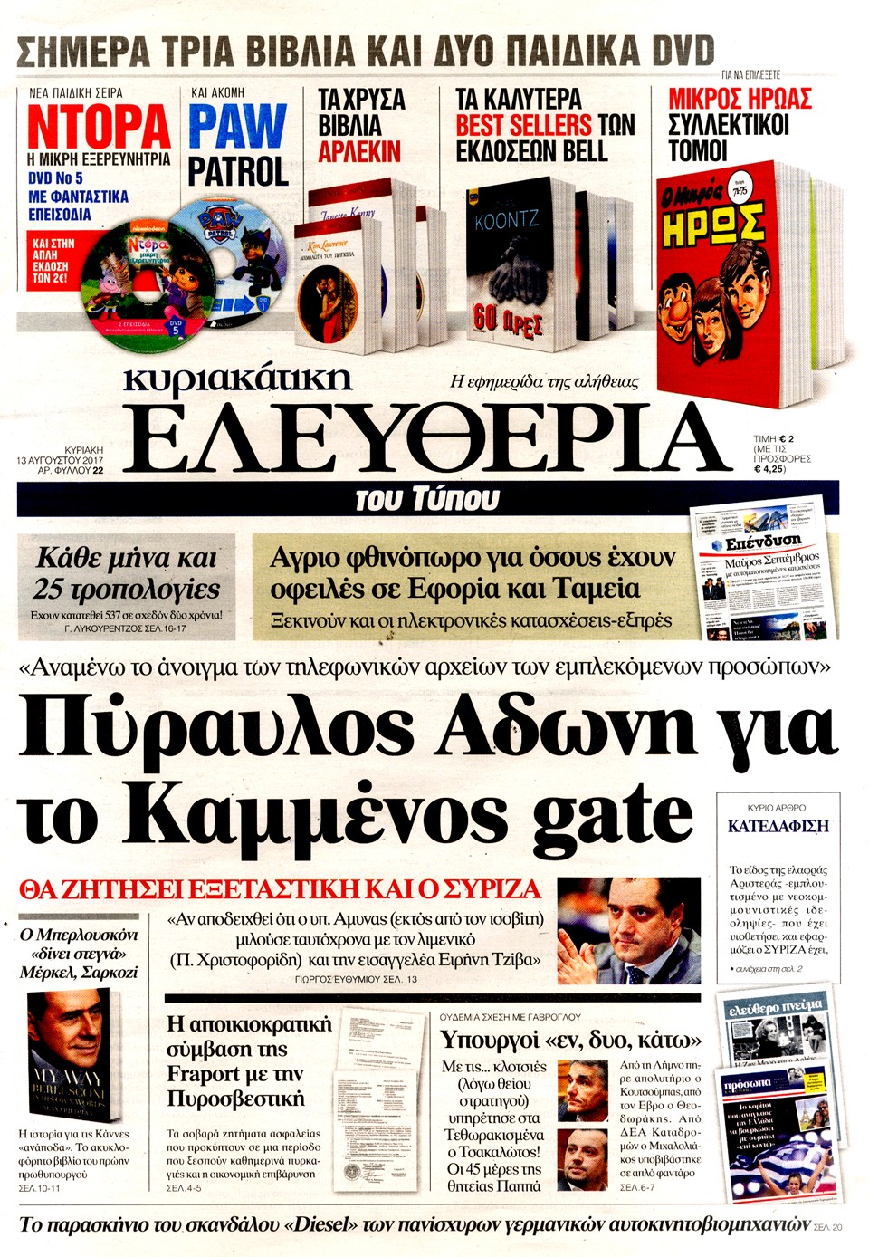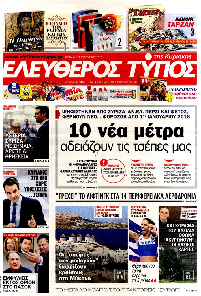 Τα πρωτοσέλιδα των κυριακάτικων εφημερίδων