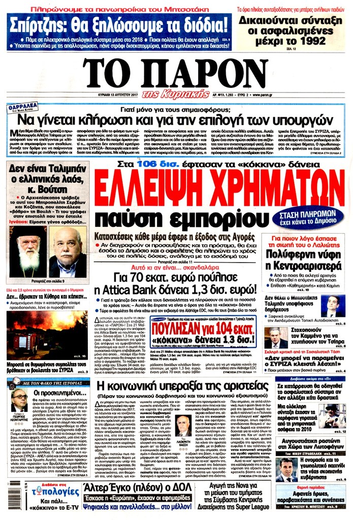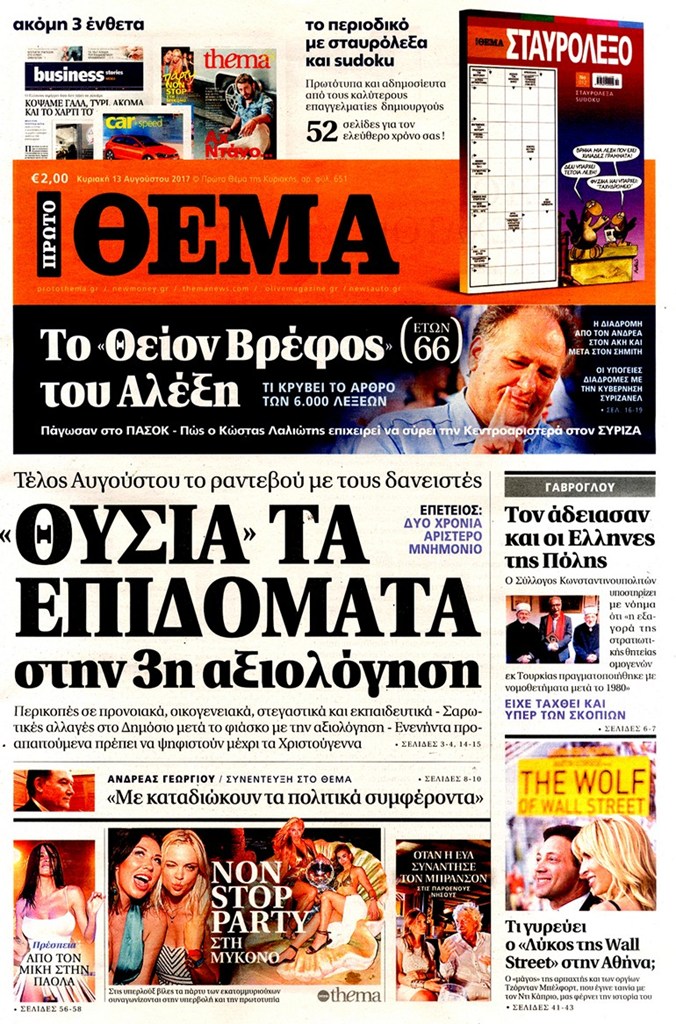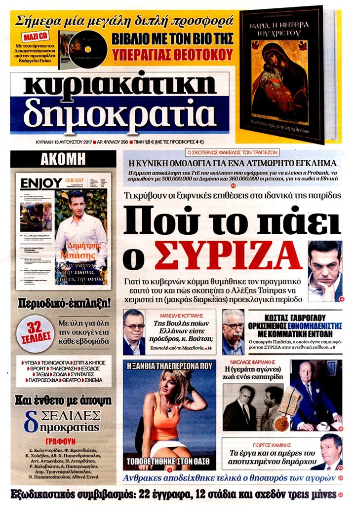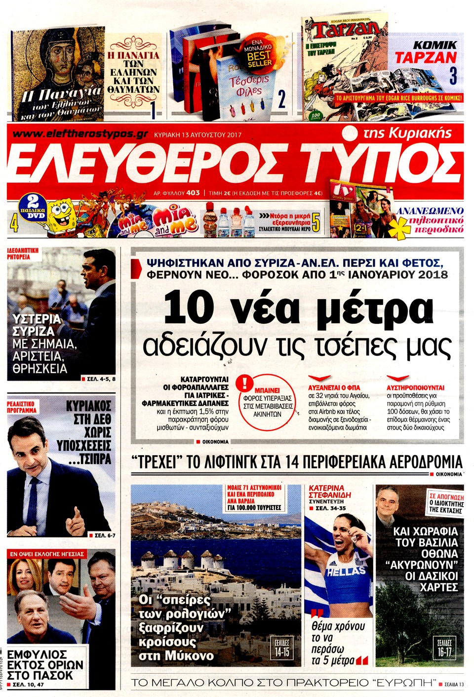 Τα πρωτοσέλιδα των κυριακάτικων εφημερίδων