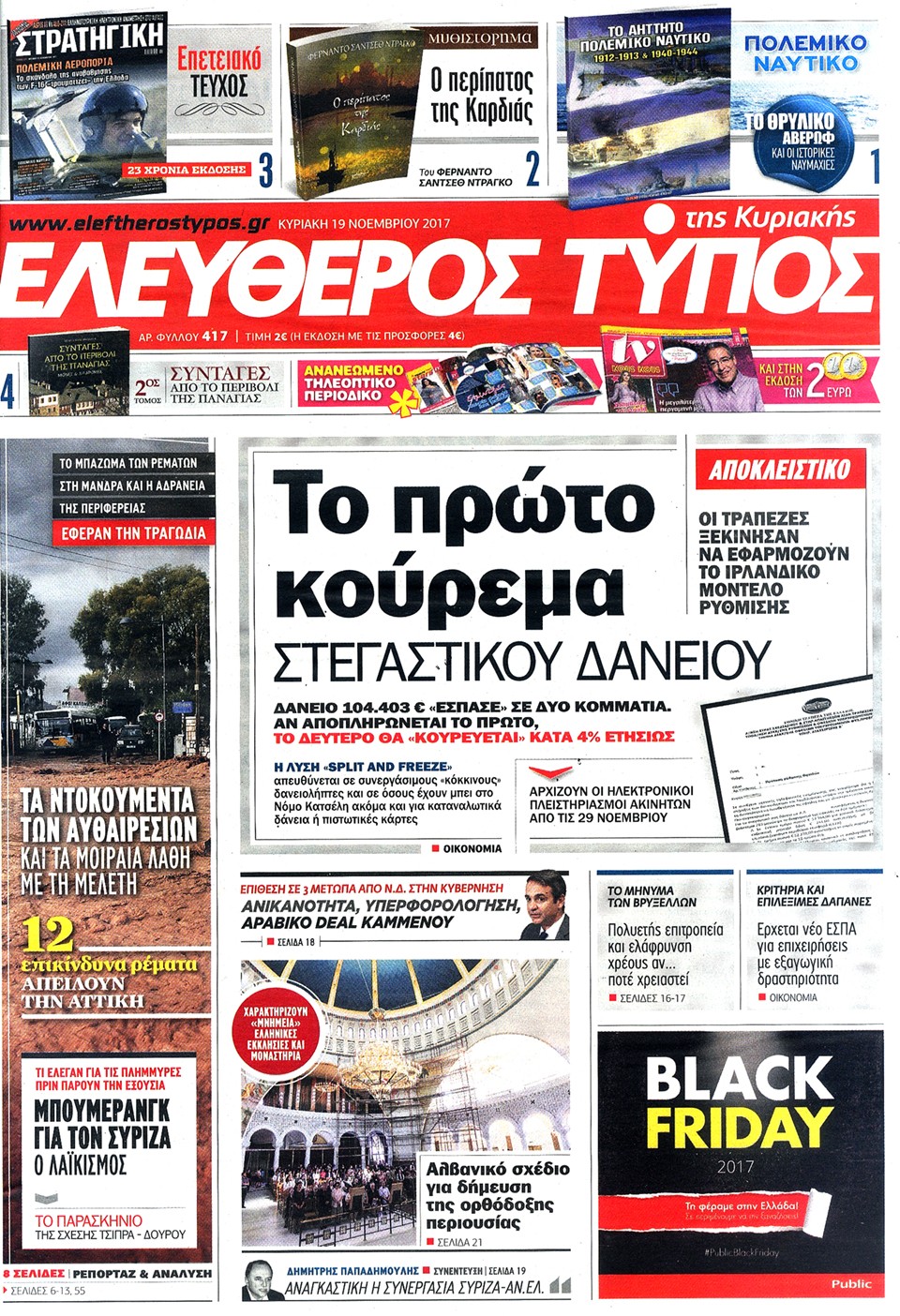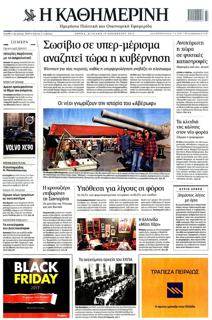 Τα πρωτοσέλιδα των κυριακάτικων εφημερίδων