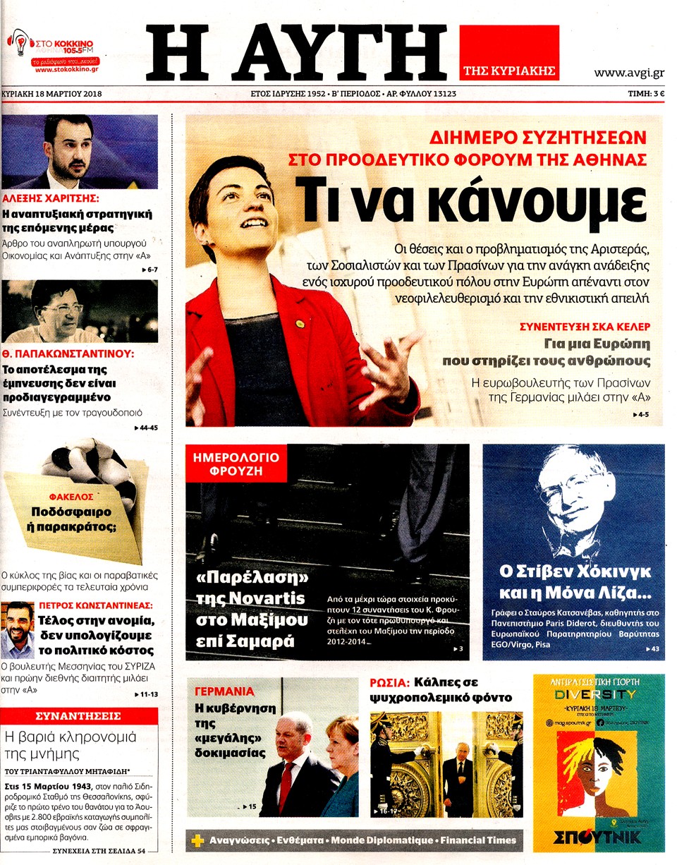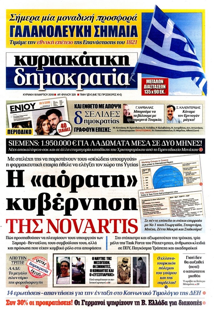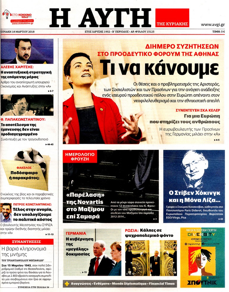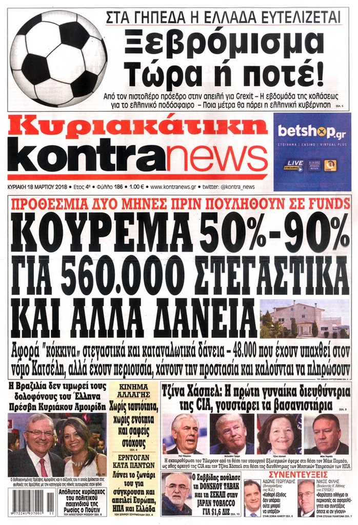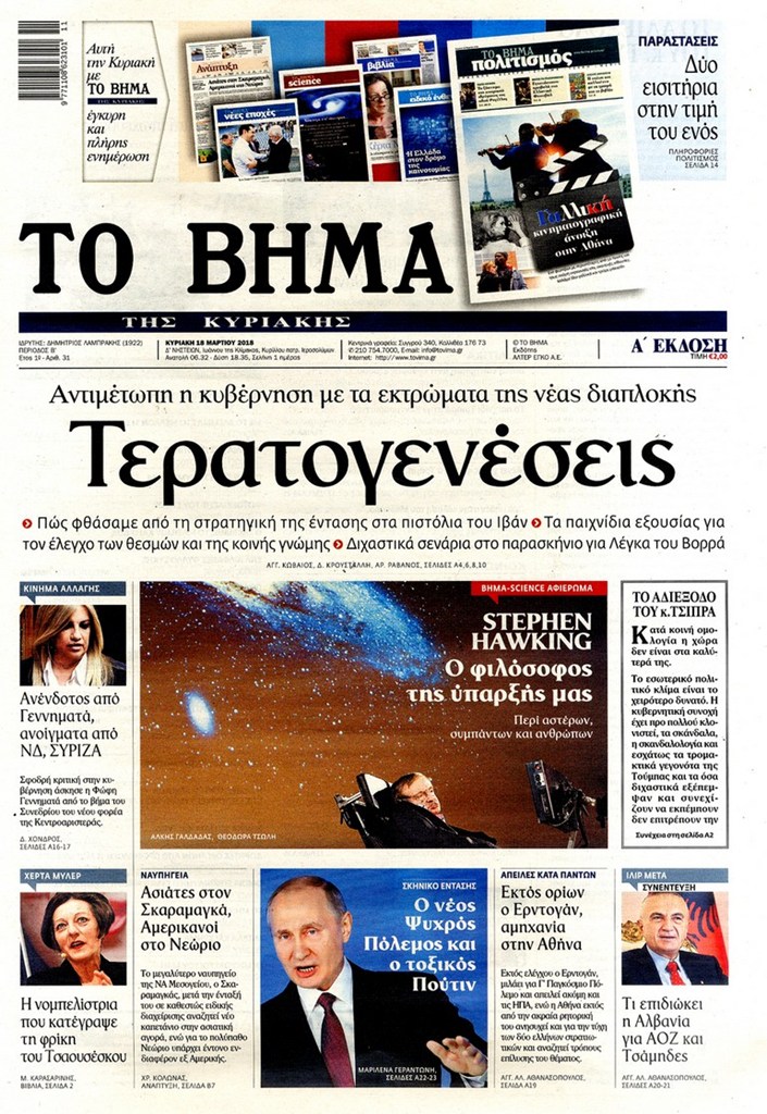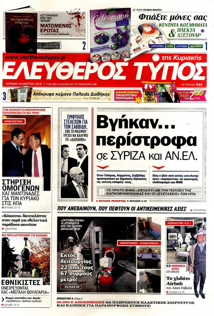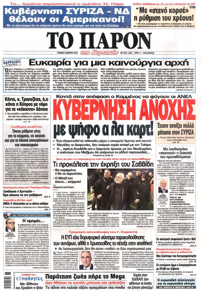 Διαβάστε τα πρωτοσέλιδα και τα οπισθόφυλλα των κυριακάτικων εφημερίδων...