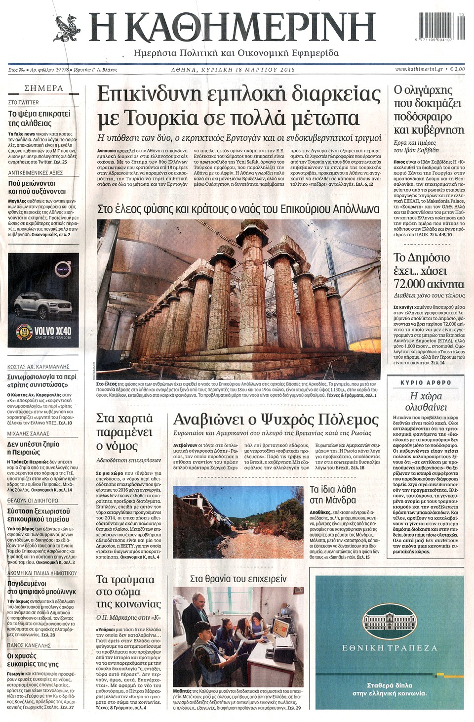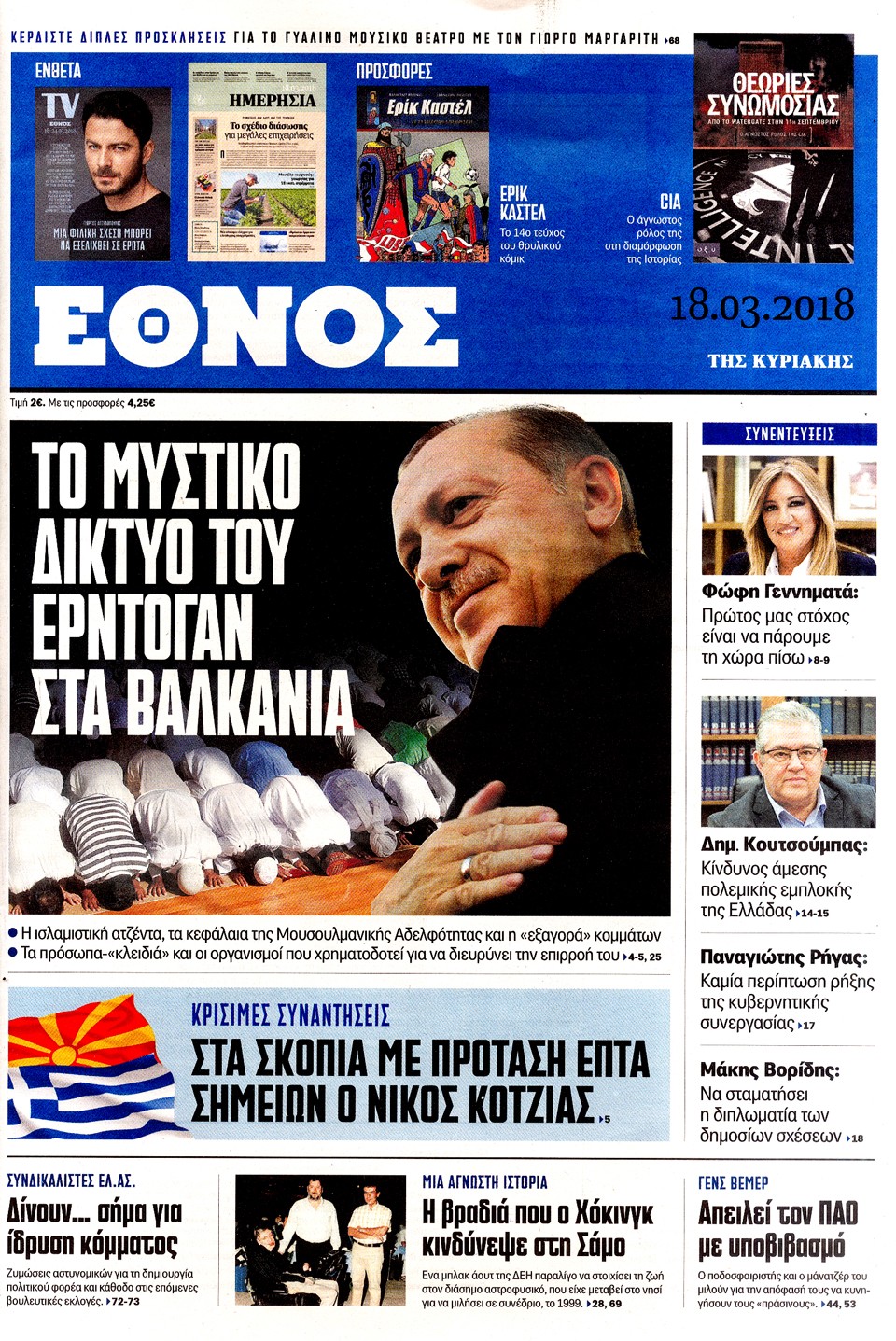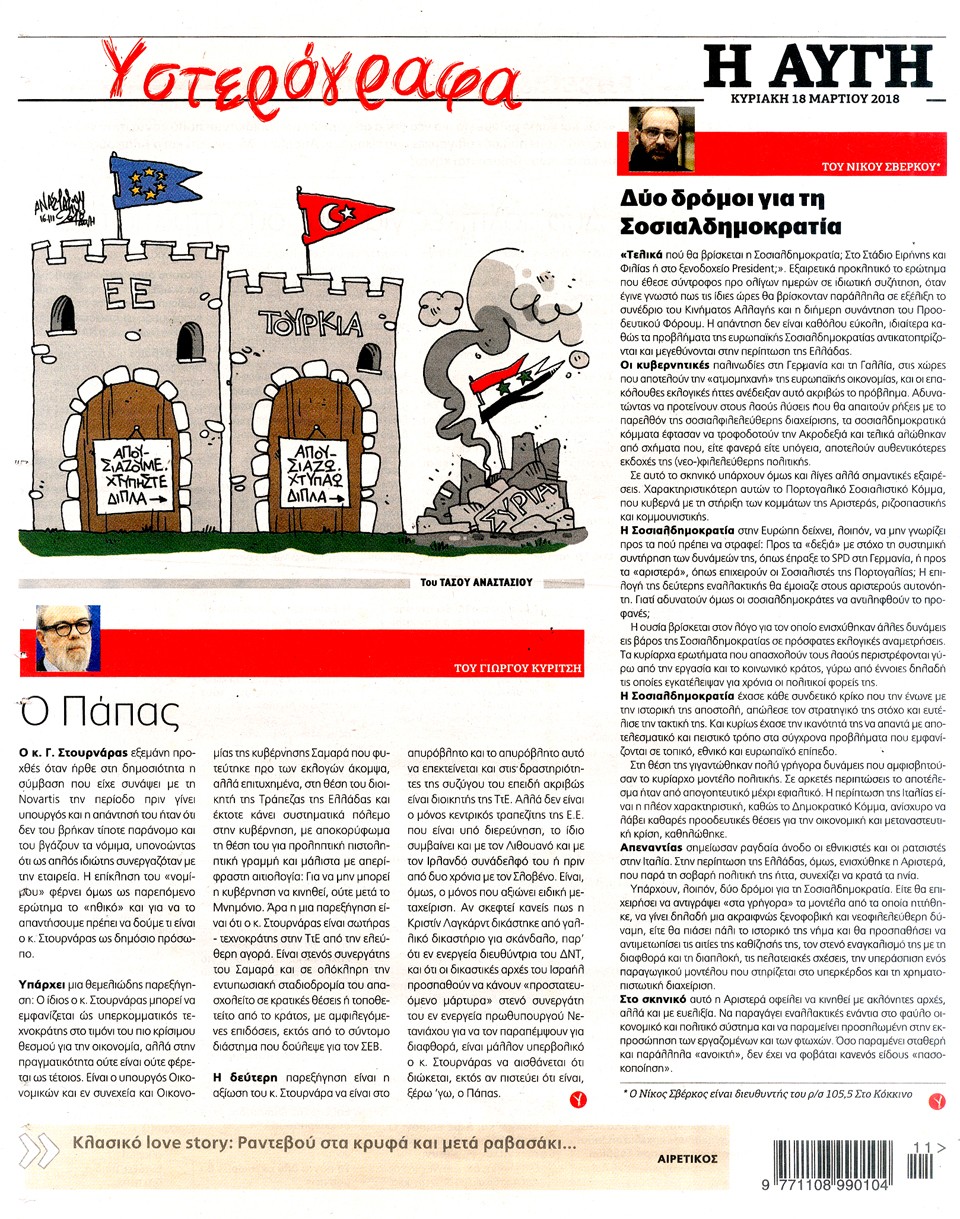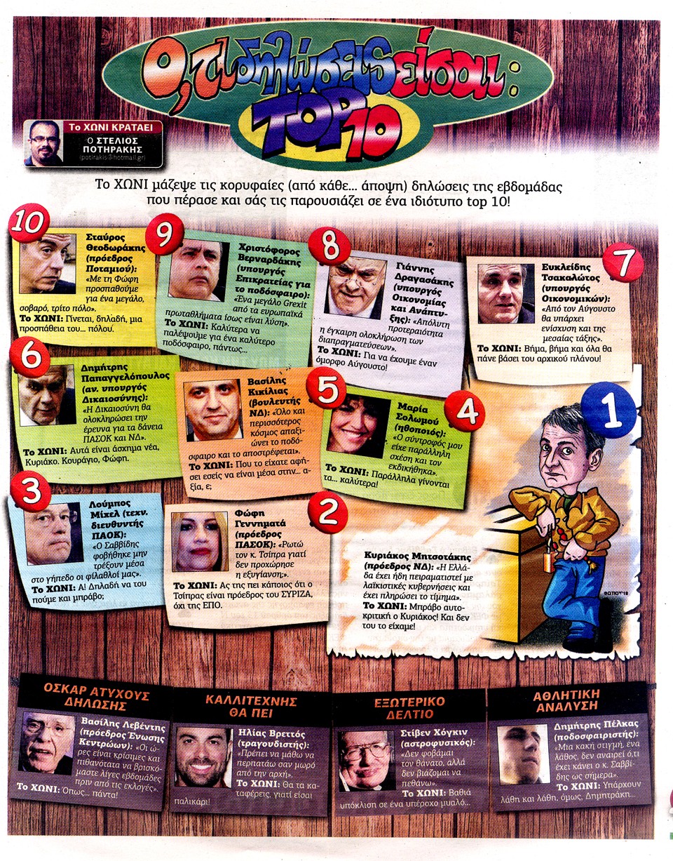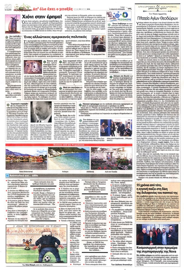 Διαβάστε τα πρωτοσέλιδα και τα οπισθόφυλλα των κυριακάτικων εφημερίδων...