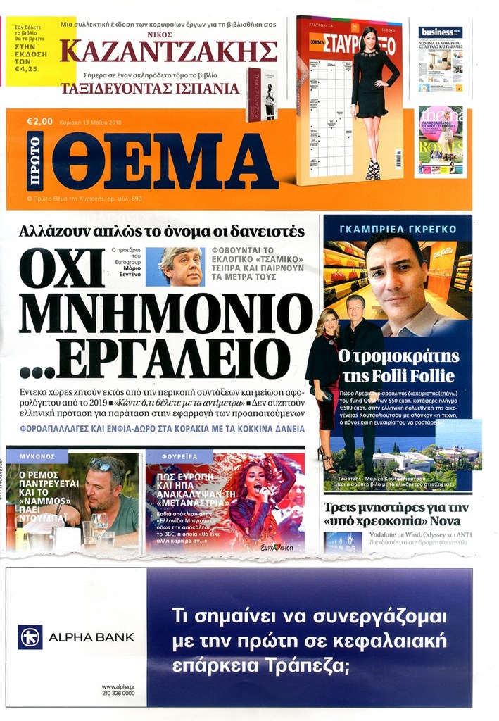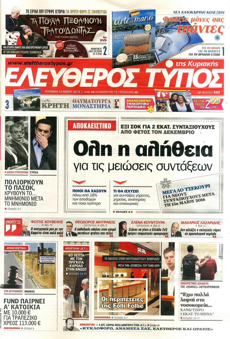 Τα πρωτοσέλιδα των κυριακάτικων εφημερίδων