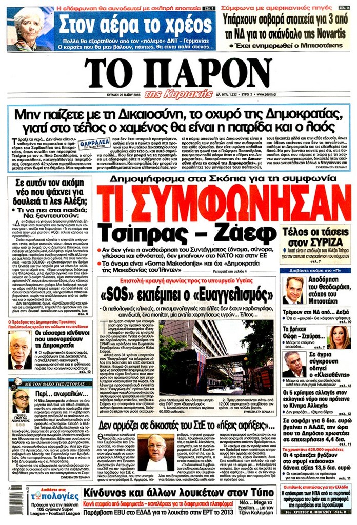 Διαβάστε τα πρωτοσέλιδα και τα οπισθόφυλλα των εφημερίδων της Κυριακής: