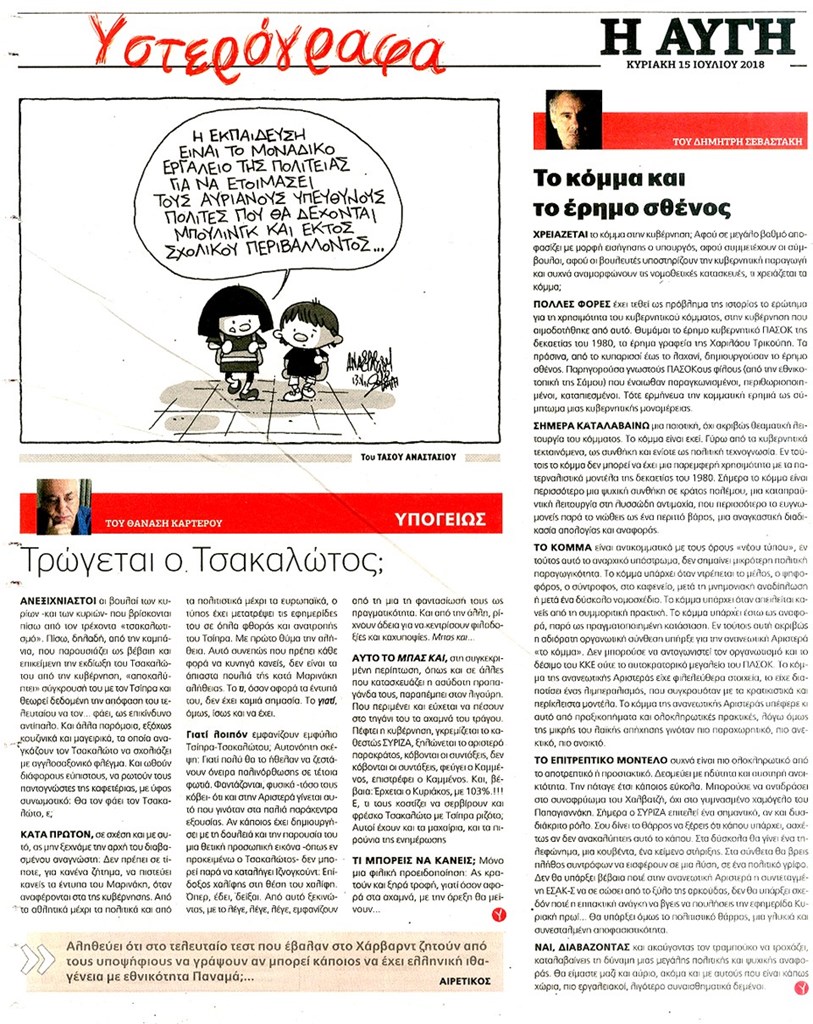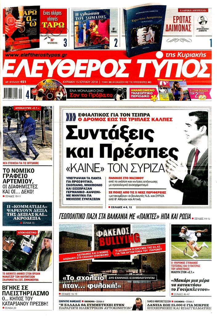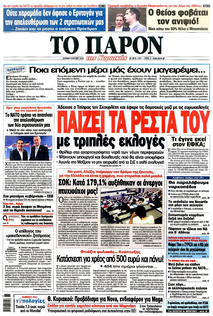 Διαβάστε στο zougla.gr τα πρωτοσέλιδα και τα οπισθόφυλλα των εφημερίδων της Κυριακής.