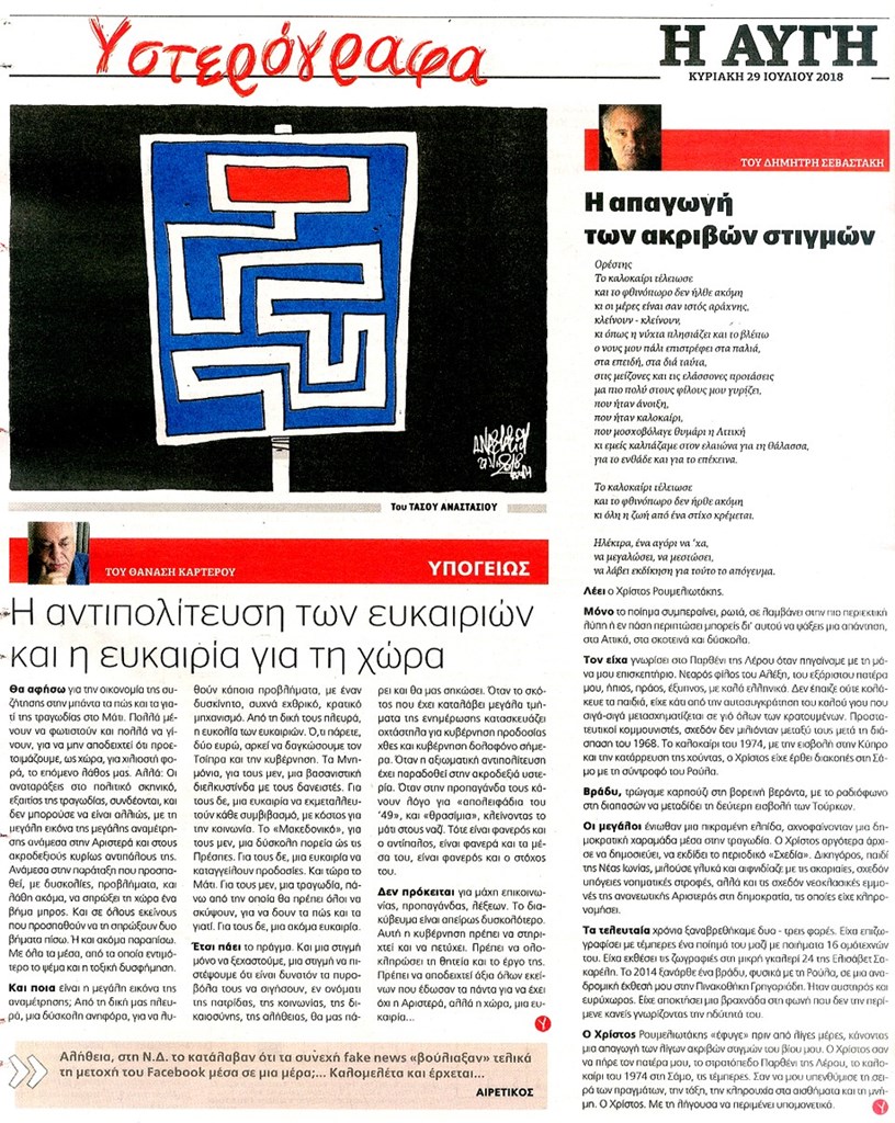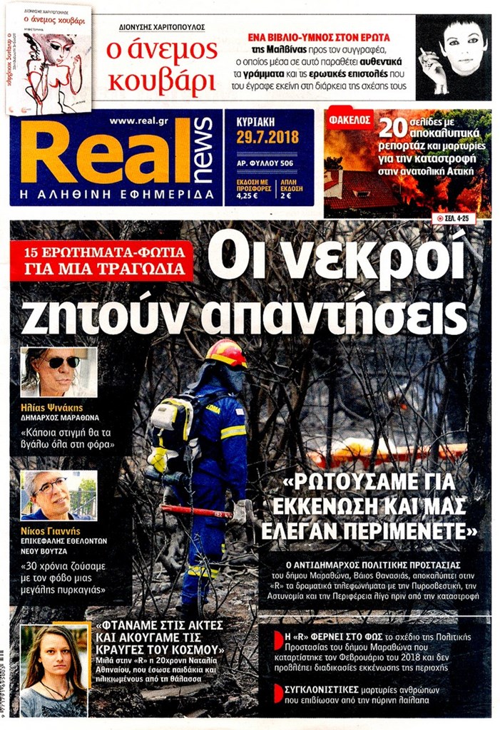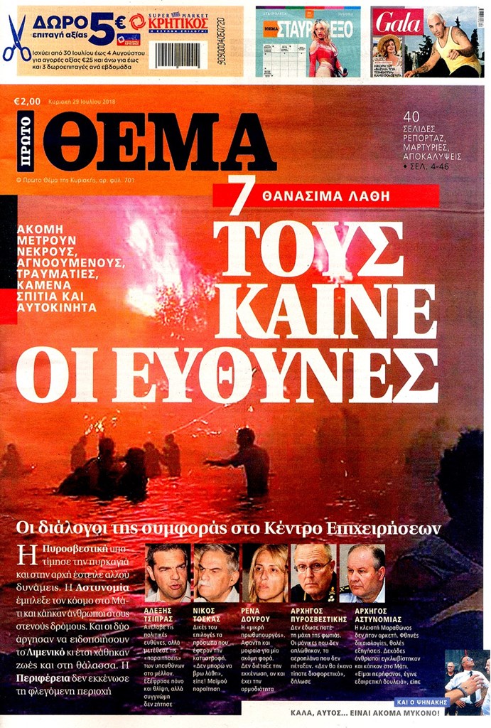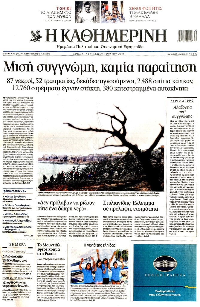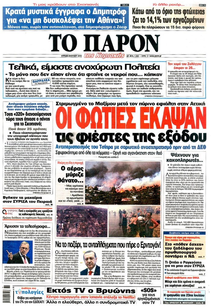 Τα πρωτοσέλιδα των κυριακάτικων εφημερίδων